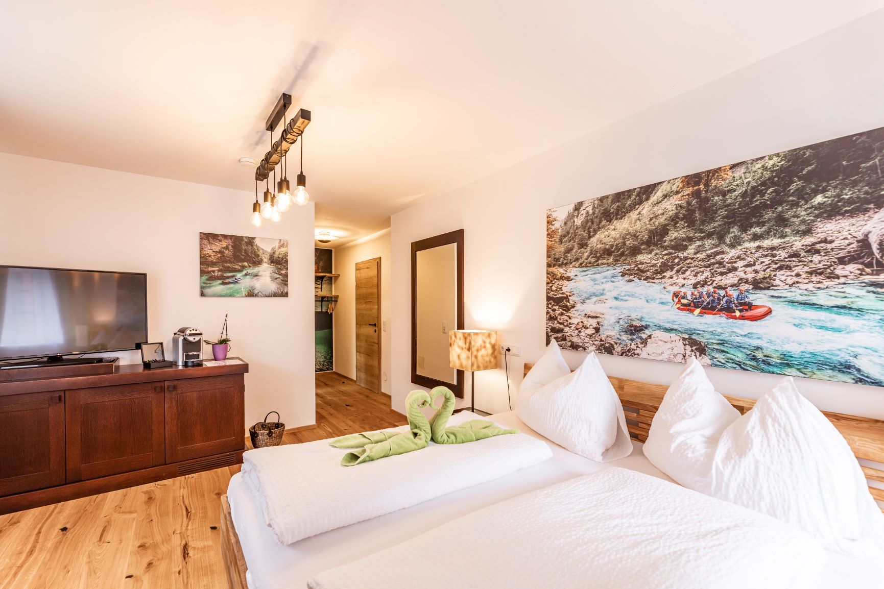Kdyby to venku tak nelákalo, člověk by tu skoro zapustil kořeny. Když se podíváte z okna, uvidíte nádherné smíšené lesy, které zdobí tyrkysově modré vody řek Salza a Enns. Místnost, kde se můžete zhluboka nadechnout.