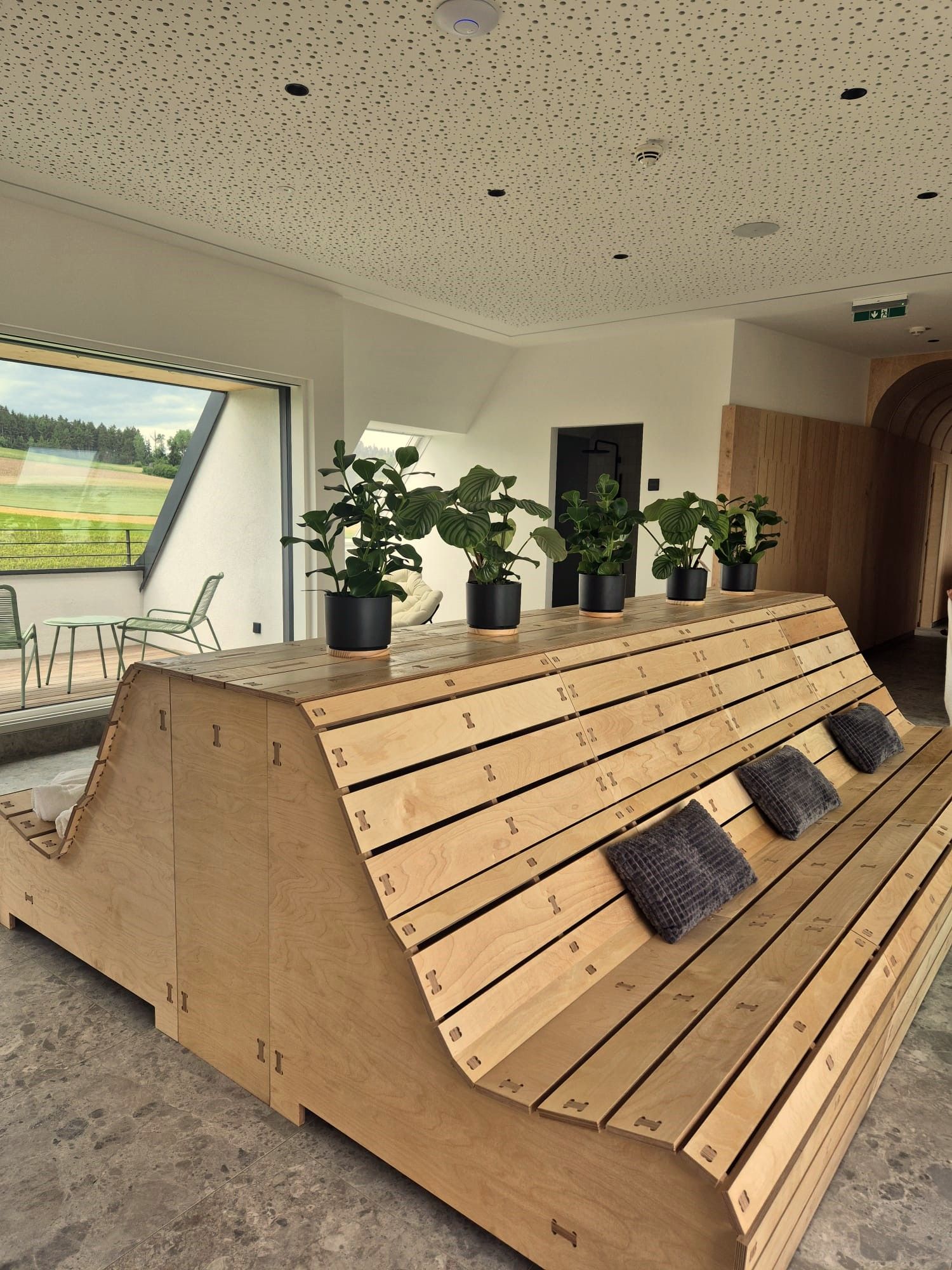 Po aktivním pobytu v přírodě vás k odpočinku vybízí střešní wellness centrum se dvěma saunami a útulnými relaxačními místnostmi. Čtyři střešní terasy navíc nabízejí fantastický výhled na golfové hřiště Ottenstein a působivou okolní krajinu.
