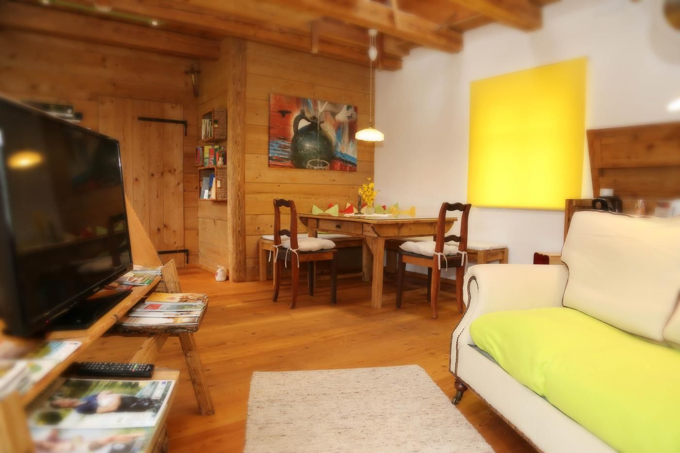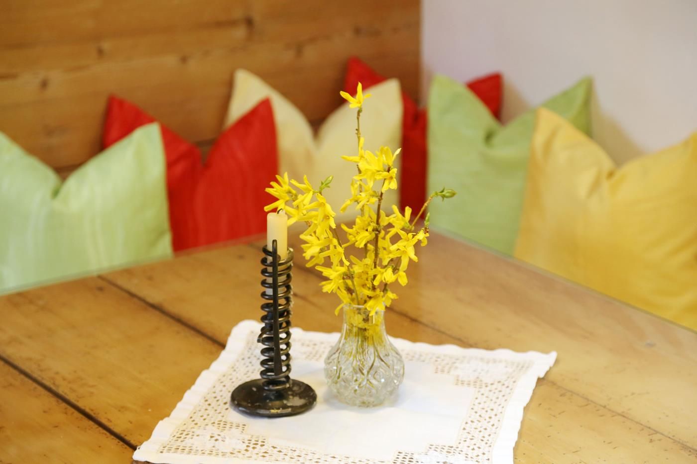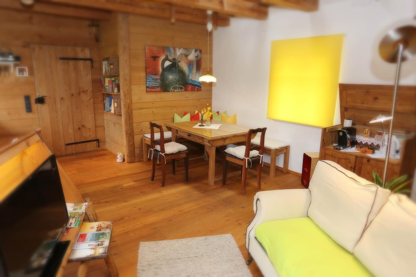 Rekreační byt se nachází v "Kellerstöcklu" - hospodářské budově - nad starým moštárnou. Jedná se o jednopokojový byt se 2 přistýlkami a noclehárnou v podkroví (přistýlky a noclehárna přístupné pouze po prostorově úsporném schodišti). "Kellerstöckl" se nachází v centru zemědělské obce, obklopen 3 čtvercovými statky a nerušeným výhledem na jih do ovocné louky. 2 terasy (jižní a východní).