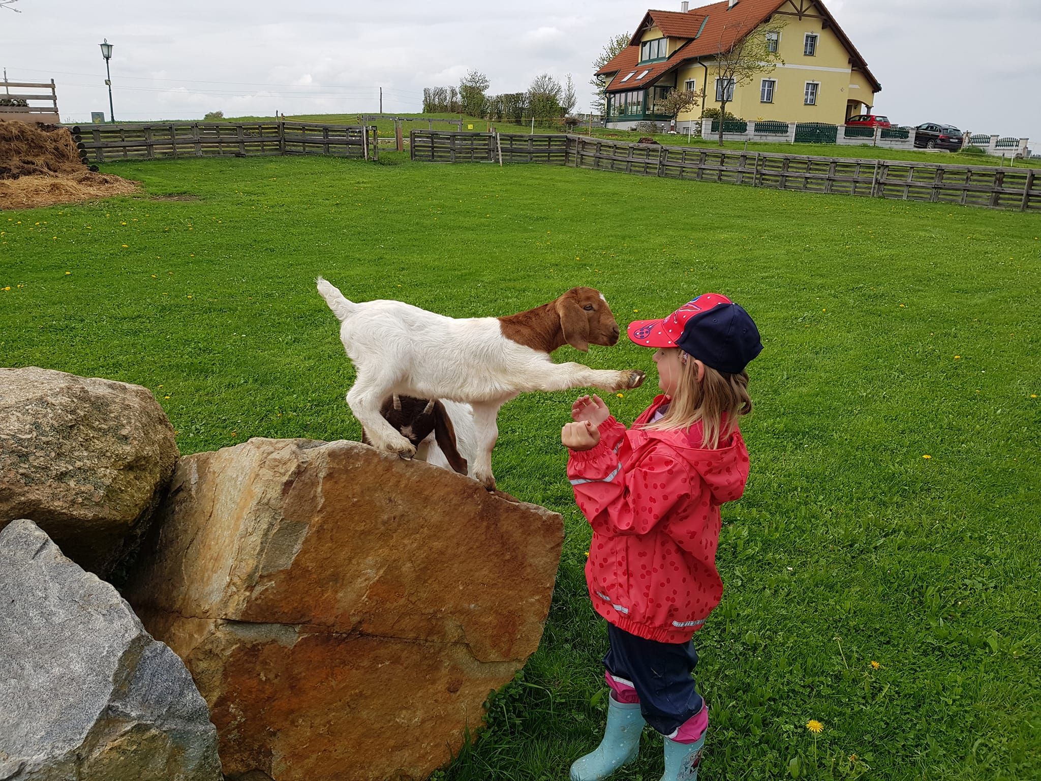 Před domem se nachází terasa s kuřáckým koutem, k dispozici je parkoviště pro auta a parkování kol. Za domem se nachází naše kozí pastvina, kde můžete relaxovat uprostřed našeho stáda koz.