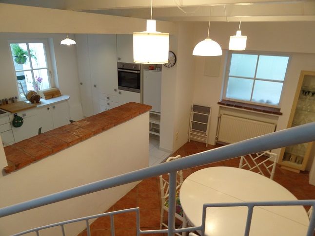 Přízemí je rozděleno na kuchyňský kout s prostorným kuchyňským ostrůvkem ( dobře vybaveným), útulný obývací prostor s posezením a krbem*, který poskytuje příjemné teplo v chladnějších dnech. Součástí standardního vybavení je TV, rádio a W-Lan. *Dřevo do krbu k dispozici