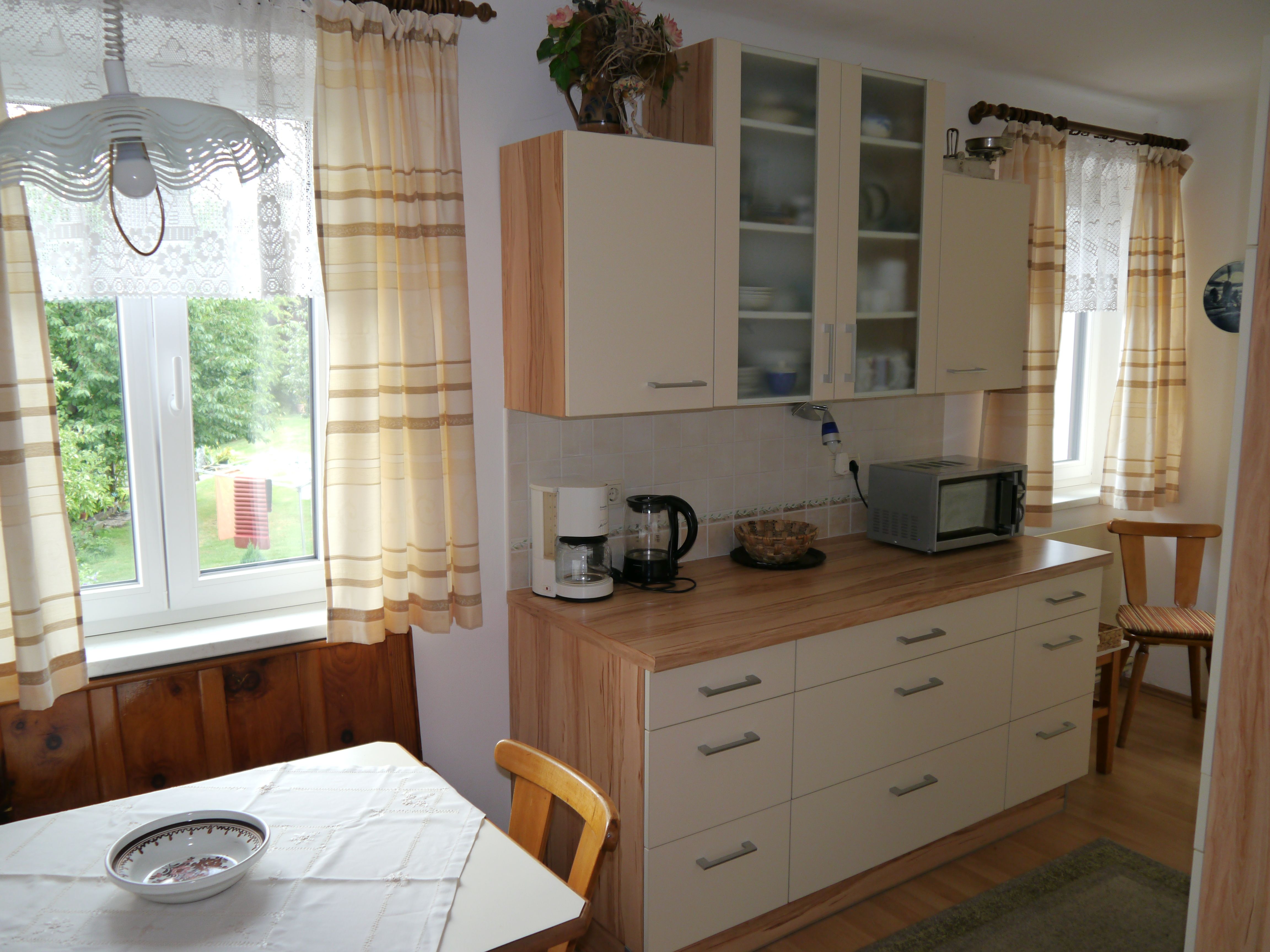 Byt o rozloze 75 m² je plně vybaven (nádobí, ložní prádlo, ručníky, myčka nádobí, mikrovlnná trouba, pračka) a může se v něm ubytovat až 5 osob. Zahrada s koupacím biotopem je oázou klidu, k dispozici je dostatek lehátek. Na zahradě je také parkovací místo pro auto. Jízdní kola je možné zaparkovat přímo v penzionu.