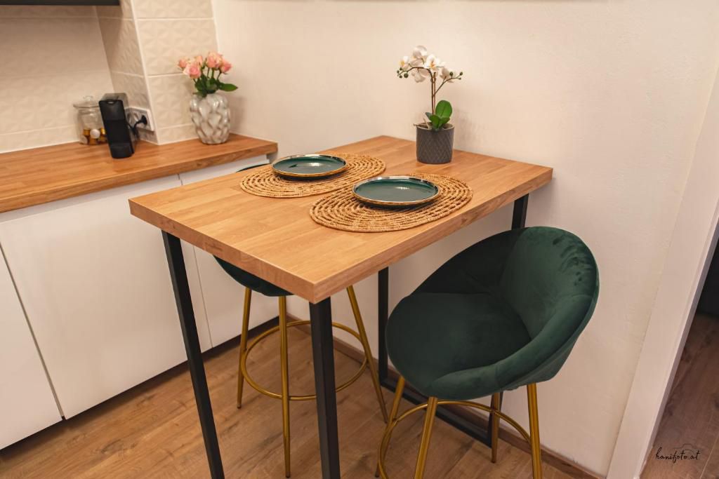 • Plně vybavená kuchyň s myčkou nádobí, kávovarem a jídelním koutem.