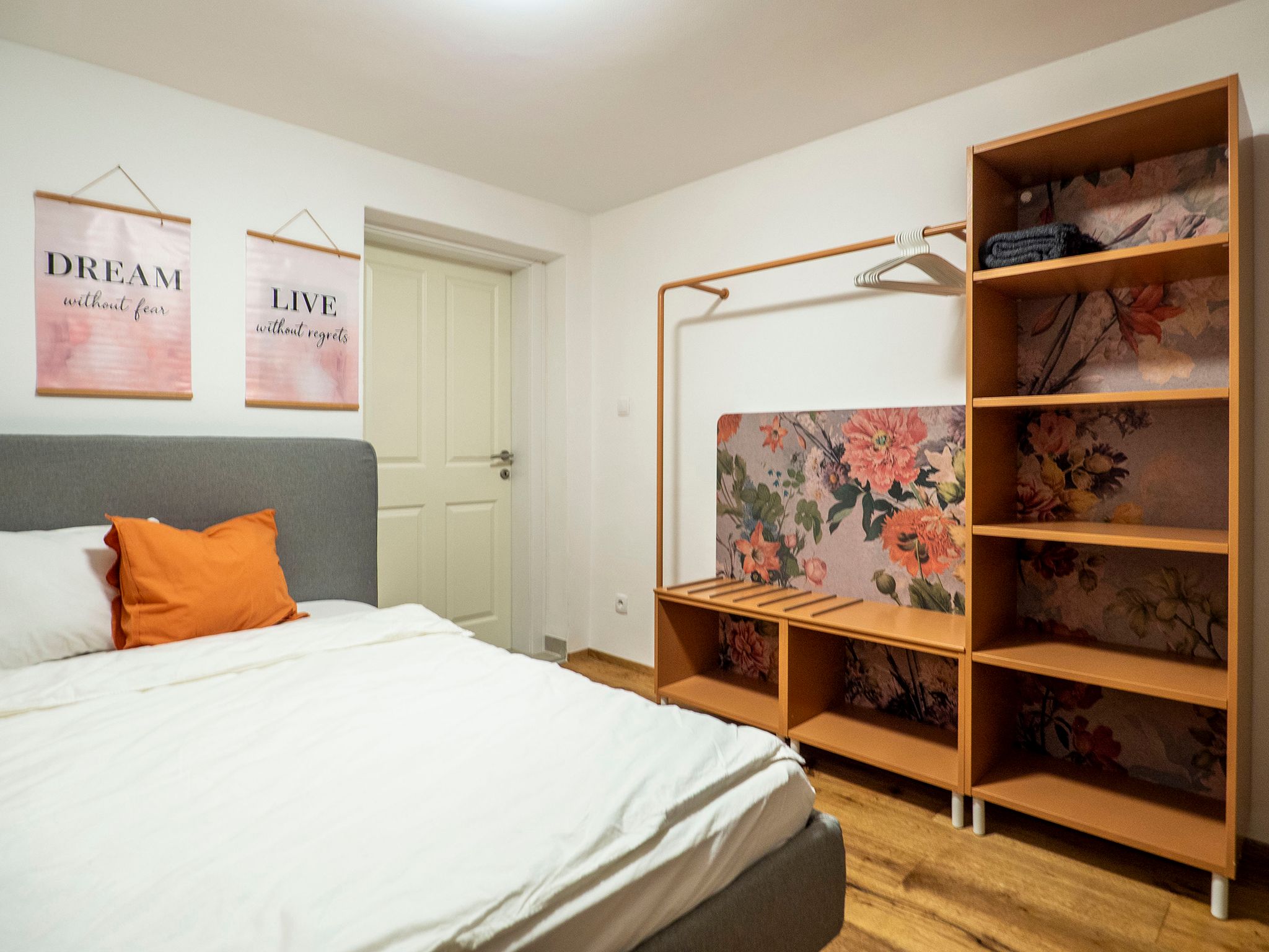 Dvě útulné ložnice, prostorná kuchyň s kompletním vybavením a moderní koupelna se sprchovým koutem vytvářejí ideální podmínky pro odpočinkové dny. Díky pracovnímu místu s rychlým Wi-Fi připojením je byt atraktivní i pro obchodní cestující. Samozřejmostí je Smart TV, bezpečná úschovna kol a také ložní prádlo, ručníky a pečující prostředky. Nabídku doplňuje malá počáteční zásoba kávy, čaje, soli, pepře, cukru, octa a oleje a pračka se sušičkou.