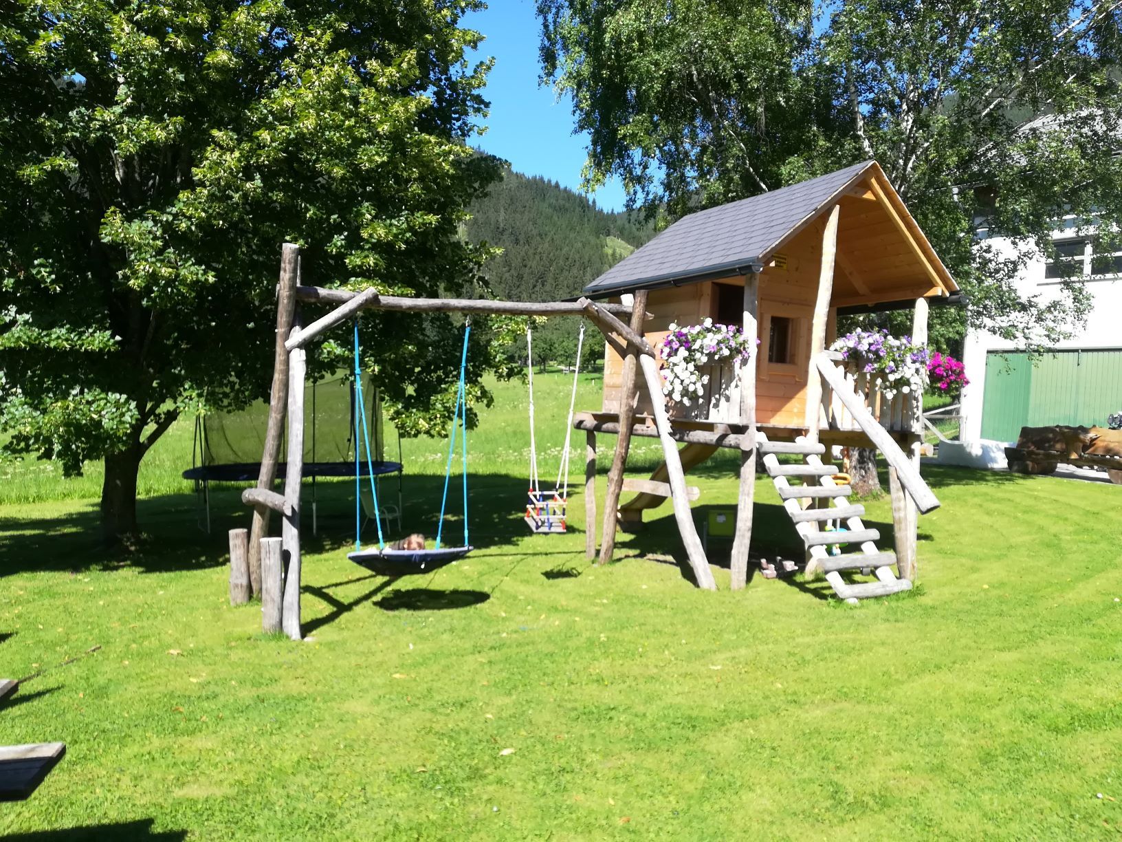 Velmi klidná, slunná poloha na okraji lesa, s nádherným výhledem na pohoří Gesäuse, trávník na opalování, balkon, terasa, dětské hřiště, domácí zvířata, bohatá snídaně s domácími produkty. Společenská místnost, TV místnost, všechny pokoje se sprchou/WC.