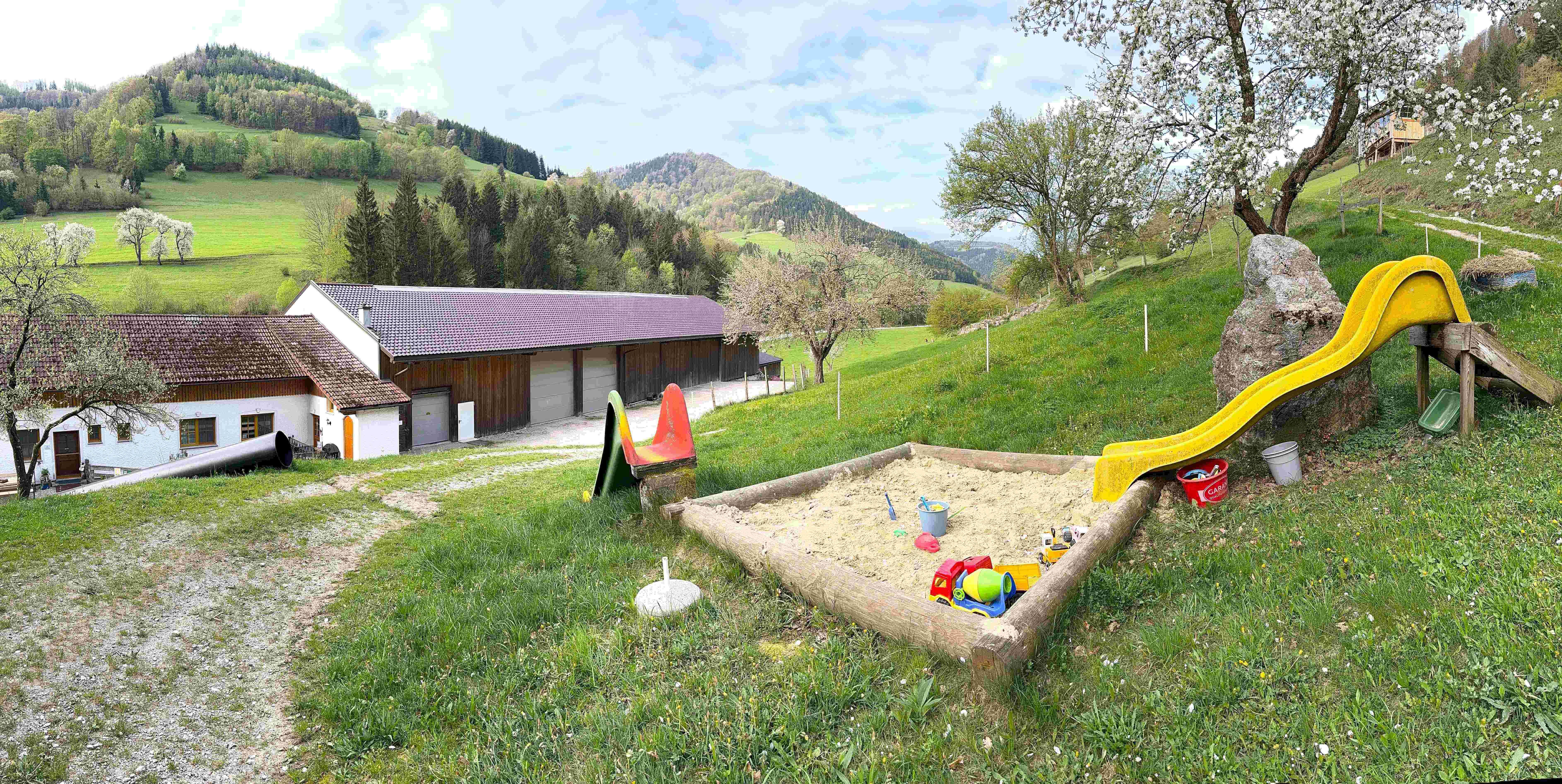 Přijeďte na dovolenou na "feel-good farmu" na Sunnseit'n - živou, skutečnou farmu s ekologickým chovem mléka. Poznejte život na venkově s krávami, telaty, prasaty, slepicemi, kočkami, včelami a farmářským psem Bellou.