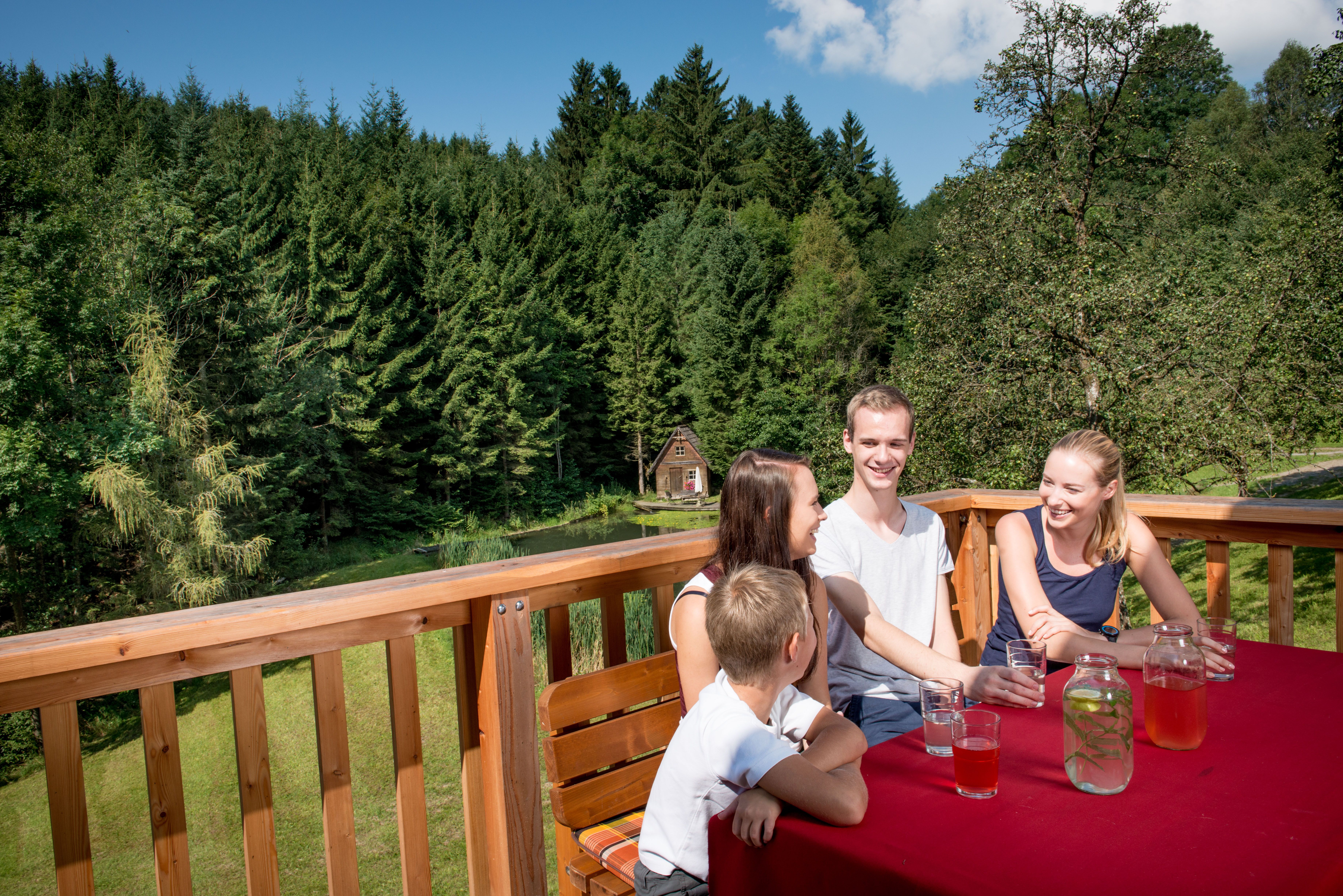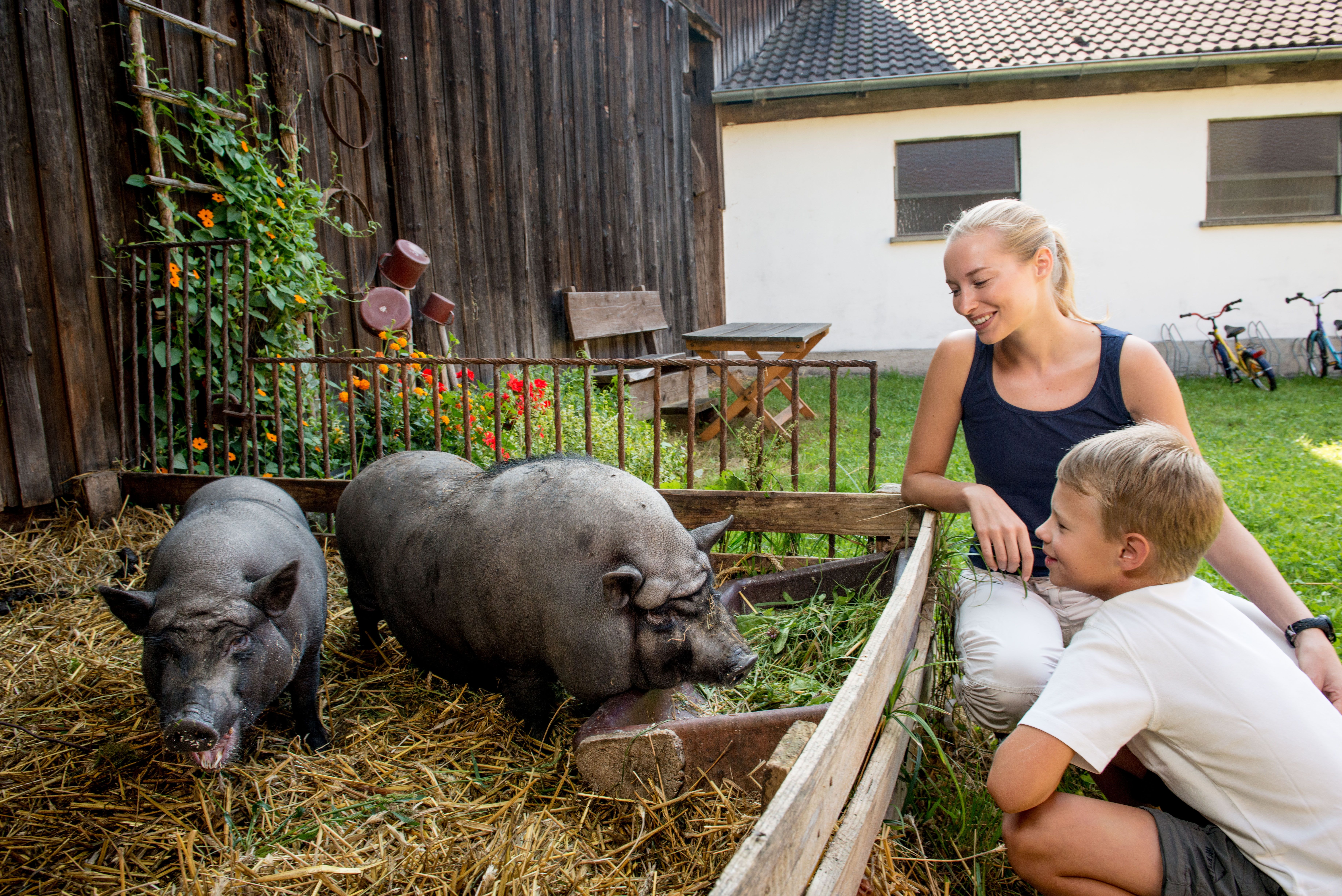 Dovolená v rustikálním "Knusperhausu" - to je dovolená na statku de luxe! Těšte se na velké pokoje, kuchyň s jídelnou, balkon a sluneční terasu, věžní místnost a wellness lázně. Z balkonu a venkovní snídaňové části je vidět na rybník a rustikální chatu. Krávy a telata, mini prasátka a kočky - čistý život na farmě! "Time-out houpačka" je ideálním místem k odpočinku. Zažijte výjimečný time-out v jižním Waldviertelu. Najděte si čas a volný čas, abyste se mohli zhluboka nadechnout, obdivovat a vychutnávat.