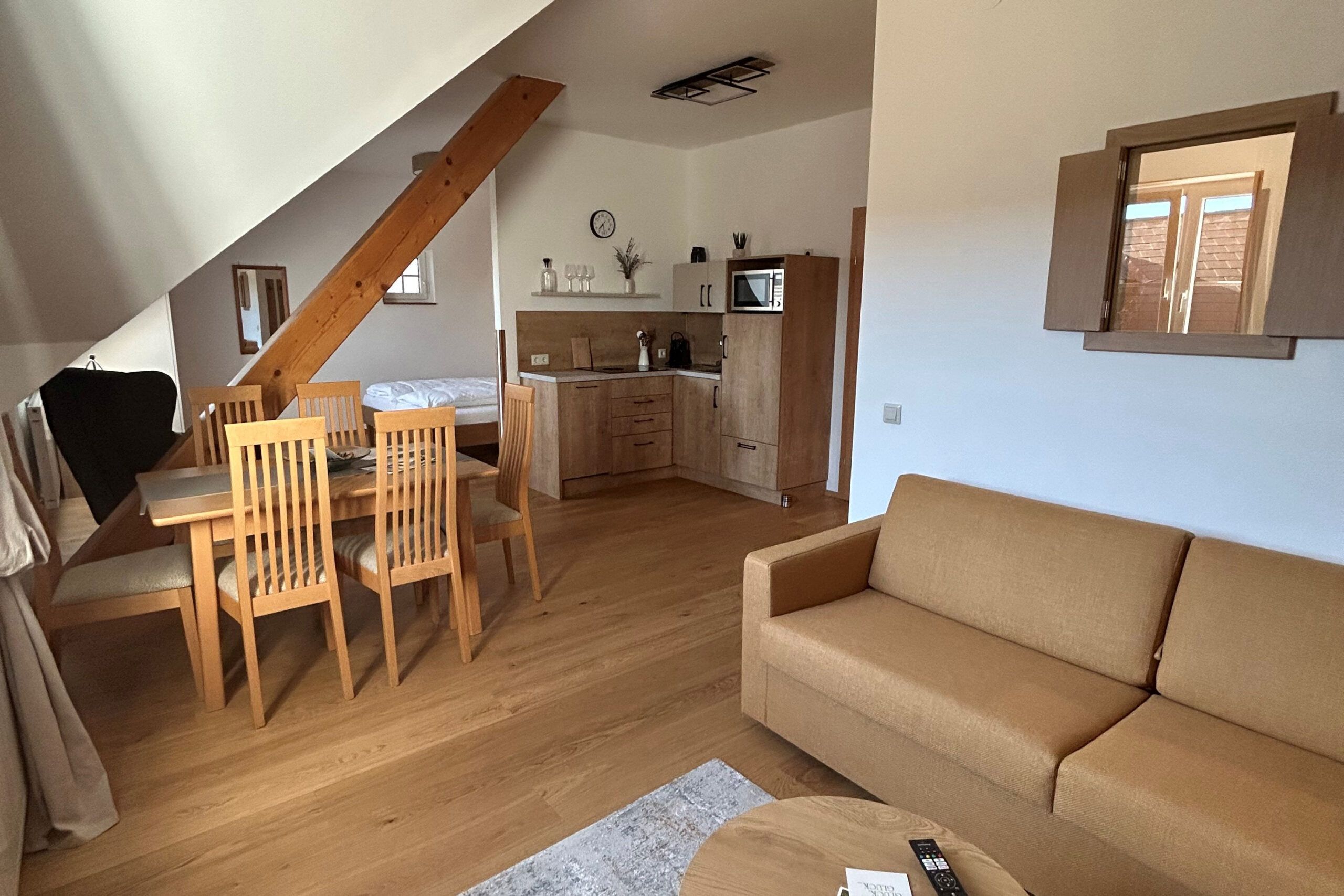 Pokud se chcete při snídani kochat výhledem na vinnou révu a ovocné stromy, je nejlepší se ubytovat v rodinném vinařství. Zde den začíná chutnou snídaní a končí sklenkou dobrého vína. Mezitím si můžete užívat gastronomie, kultury, cvičení nebo odpočinku, podle toho, jakou máte náladu. Čeká na vás vlastní apartmán s terasou na vinici nebo v podkrovním stylu s plně vybavenou kuchyní.
