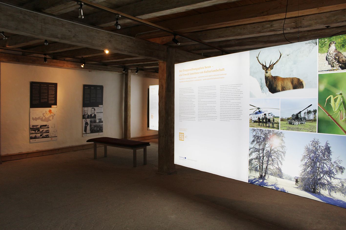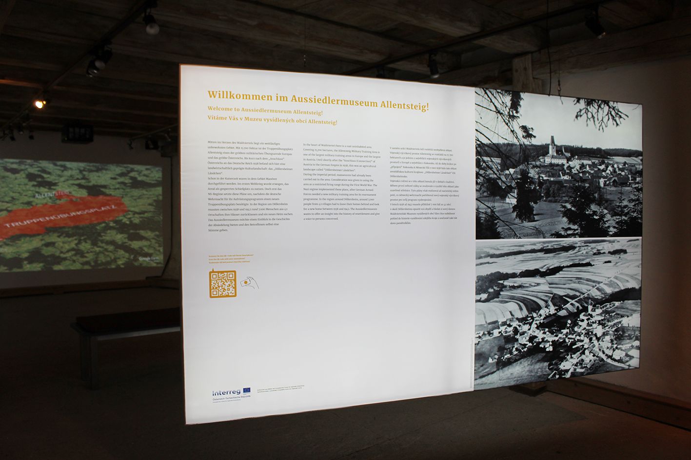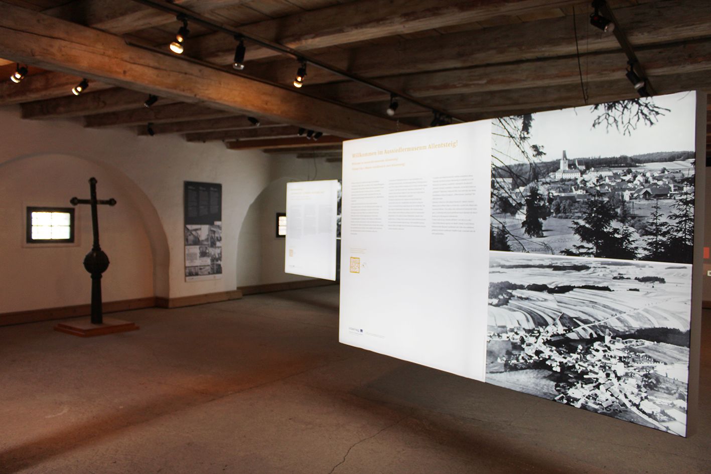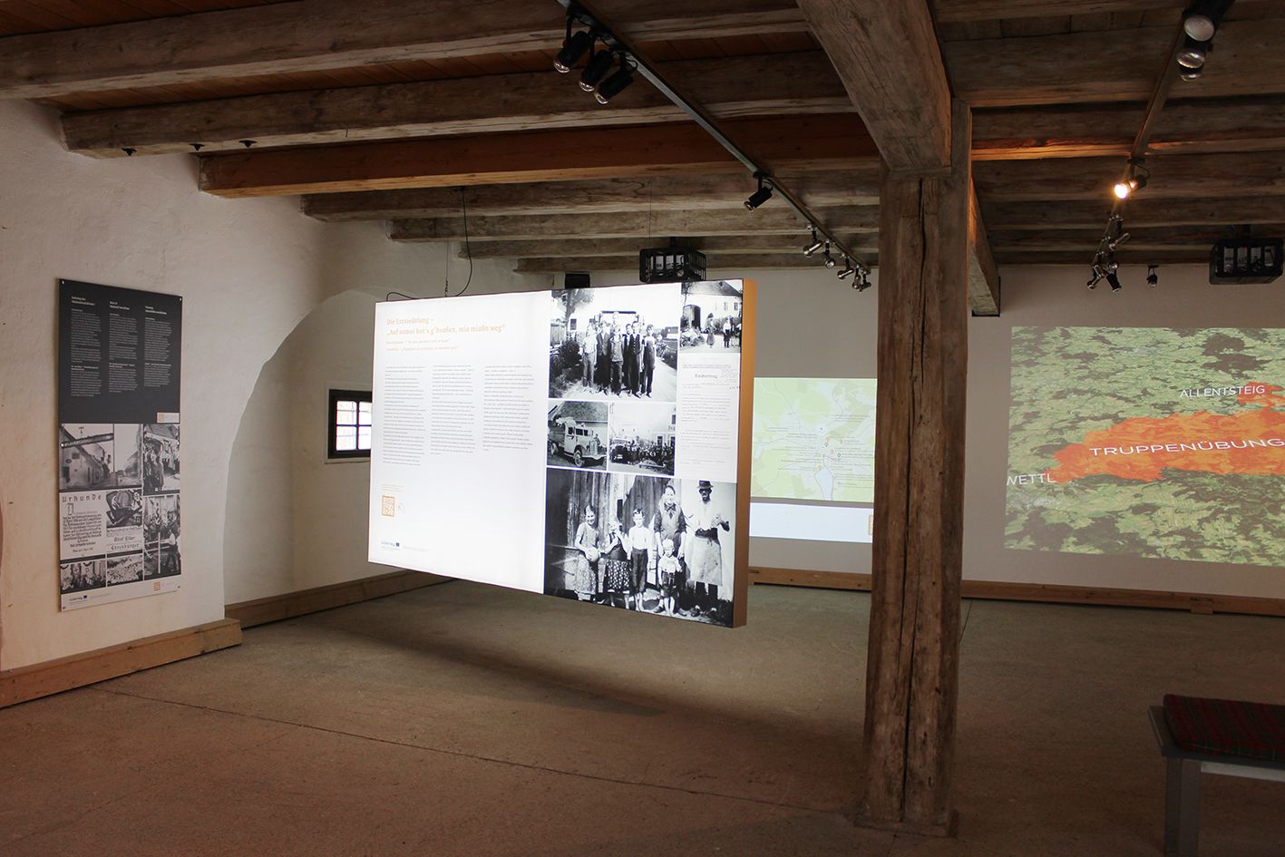 Ústředním tématem je stále přesídlení v oblasti vojenského výcvikového prostoru. Přesídlení je věnováno sedm stanovišť v mnoha různých oblastech. Ukazuje například, jak vypadal život lidí před drastickými událostmi. Ústředními body jsou připojení k Německé říši a samozřejmě přesídlení obyvatelstva. Ukázány jsou také náhradní domy, zálohy a osudy lidí. Další kapitolou je charakter vojenského výcvikového prostoru a TÜPl jako území Natura 2000. Rozhovory, zvukové záznamy a filmy ilustrují pohnutou historii regionů. Pomocí QR kódů, které lze naskenovat mobilním telefonem, lze na obrazovku přenést další virtuální obsah, jako jsou fotografie, videa a texty. Vstup je rovněž prostřednictvím QR kódu a je zdarma. Aussiedlermuseum je otevřeno od dubna do října denně od 9 do 18 hodin.