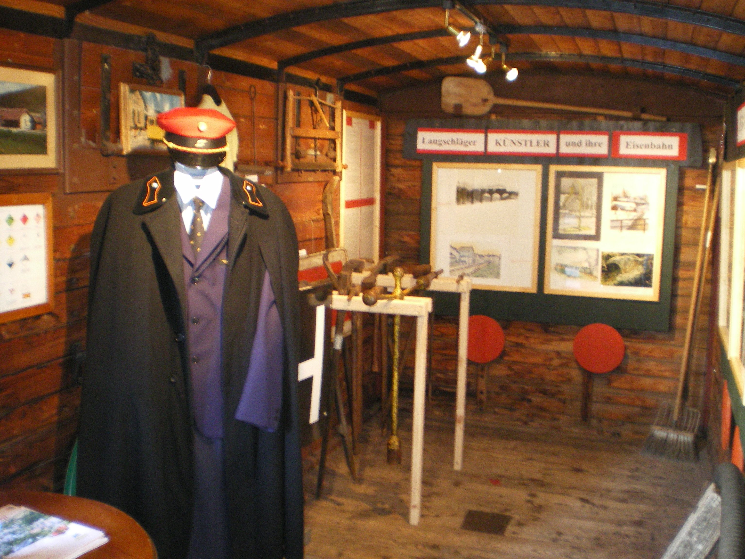 ...muzeum úzkorozchodné železnice v nákladním vagonu je otevřeno, když vlak směrem na Groß Gerungs zastaví v Langschlagu: