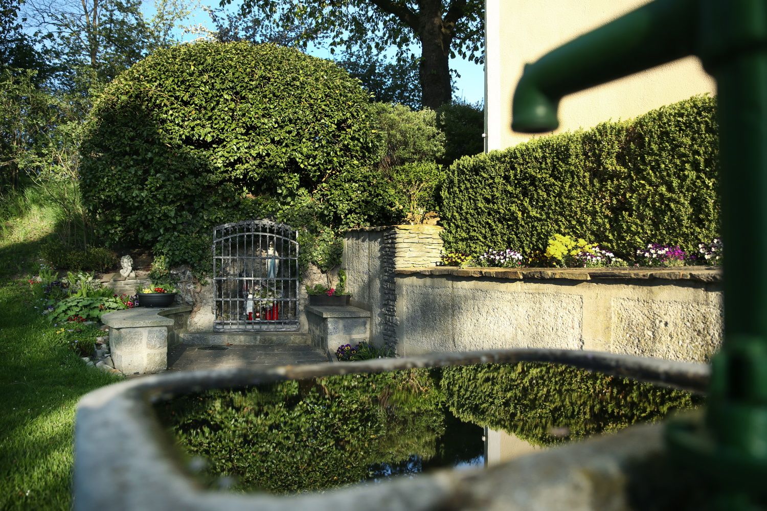 Existence "svaté studny" se datuje přibližně do roku 1820. Je pravděpodobné, že "vědomosti" o dobré léčivé vodě - dnes se má za to, že má tzv. dextroratační intenzitu - sahají do mnohem dřívějších dob. Místo pramene bylo označeno sochou a obrazem Panny Marie s božským dítětem. V roce 1849 byla postavena malá kaplička bez věže a kolem ní byly vysázeny čtyři kaštany. Zdálo se, že pramen s křišťálově čistou vodou má mimořádnou moc. Díky četným darům věřících a dobrodinců byly v roce 1913 zahájeny práce na rozšíření malé kaple. Dne 7. června 1914 byla rozšířená svatyně, která byla svěřena Panně Marii, vysvěcena. Dekretem z 23. května 1914 udělil biskup Johannes Baptista Rößler kapli povolení sloužit zde mši svatou s následujícím obsahem: "Nově postavené kapli "zum heiligen Bründl" v Gross Sierningu se uděluje povolení sloužit mši svatou, ale pouze se souhlasem místního faráře a pouze v pracovní dny se zde smí sloužit mše svatá. Povolení nemělo mít žádnou platnost, pokud by kaple byla využívána i ke světským účelům nebo nebyla udržována v dobrém stavu či nebyla vybavena potřebným příslušenstvím..... Tento milostivý list by měl vždy zůstat vystaven v kapli, aby si jej mohl každý prohlédnout. + Naše požehnání farnosti Gross Sierning!"