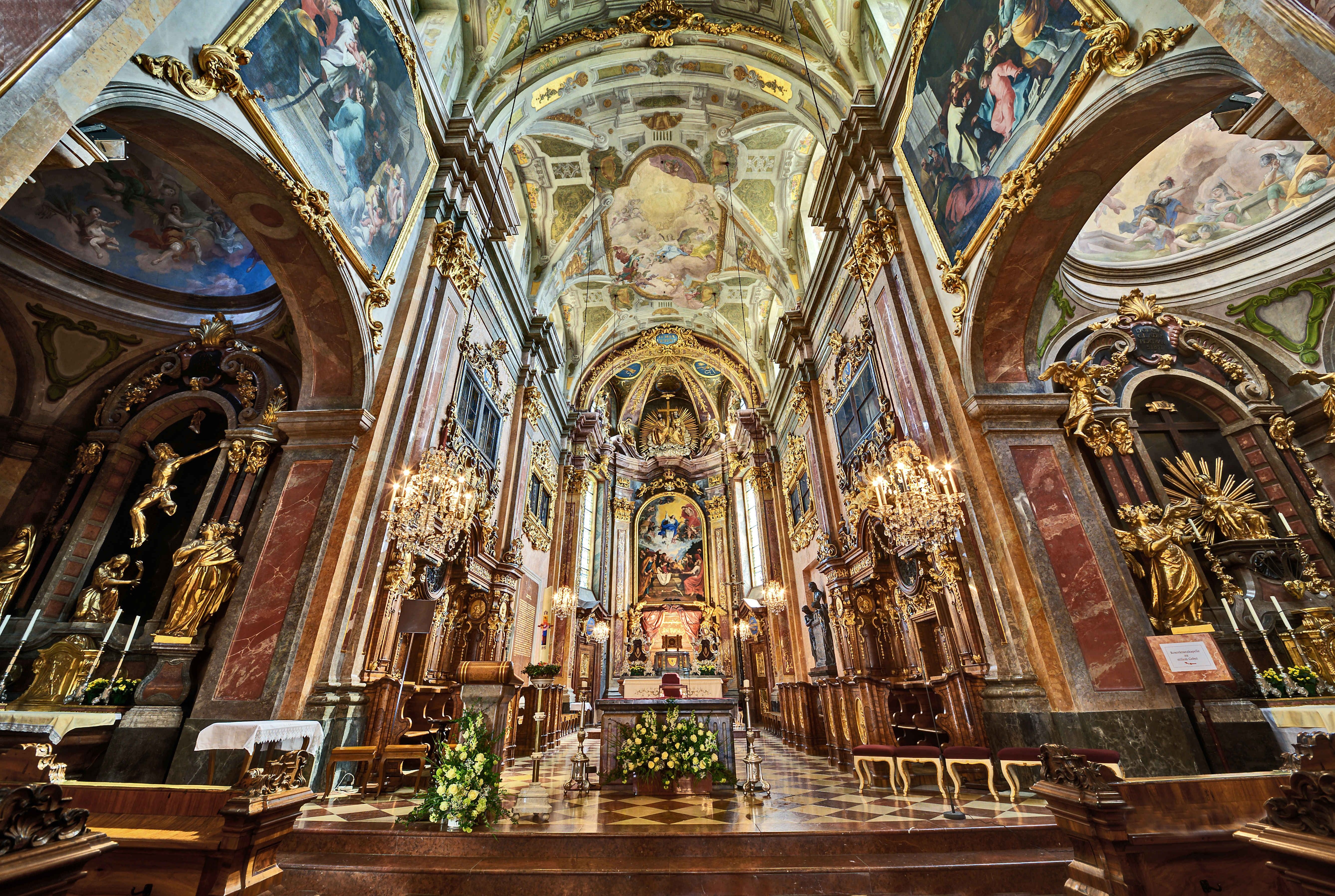 - Oltáře: Na bočních oltářích jsou Granovy obrazy, zatímco oltářní obrazy, jako například oltáře Hippolyta a svatého Augustina, jsou dílem Franze Munggenasta.
