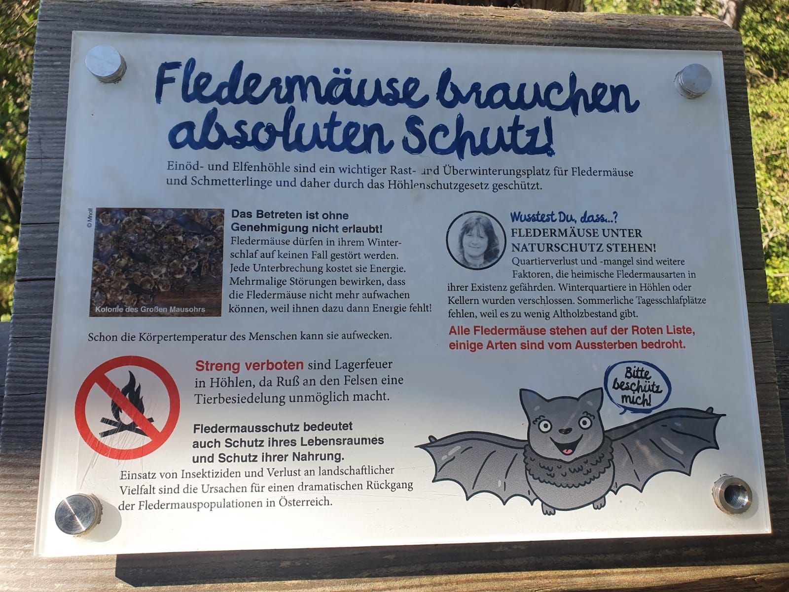 Po několika stech metrech dojdeme na novou "Dobrodružnou stezku pro netopýry", naučnou stezku s působivými hracími a vzdělávacími stanovišti, která nás seznámí s netopýry a zavede nás k jeskyním "Einödhöhlen", jež jsou domovem těchto jeskynních obyvatel, kteří jsou obzvláště hodni ochrany. Einödhöhle je největší zachovalá mladotřetihorní příbojová jeskyně na západním okraji Vídeňské pánve a v roce 1949 byla vyhlášena přírodní památkou. V rámci tohoto projektu se upravují vchody do jeskyně a její okolí. V blízkosti "Einödhölen" bude staré lesní hřiště přeměněno na "netopýří louku" a vybaveno vhodným herním zařízením. Pokud budete mít chuť, můžete se vydat na chatu Rudolfa Proksche (541 m n. m.) a vychutnat si nádherný výhled z historické vyhlídkové plošiny ("Klesheimwarte").