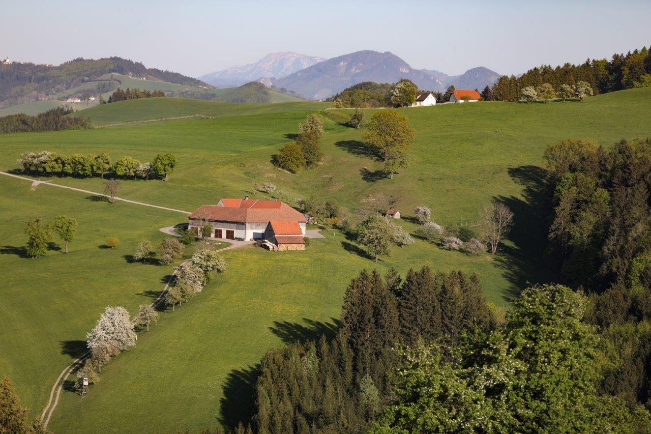 Kousek od St.Georgen in der Klaus východním směrem se nachází tento bod s velkým Vierkanterem obklopeným hrušněmi.