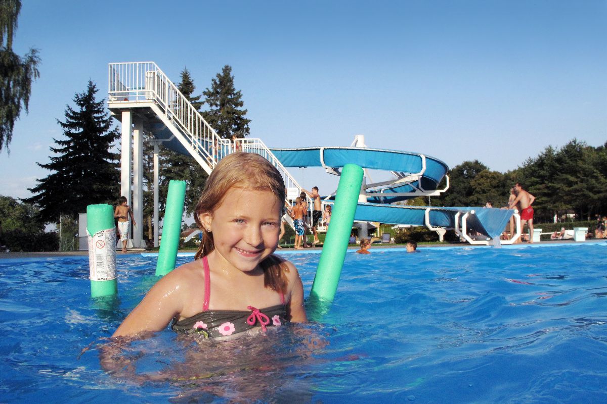 V horkých letních dnech je venkovní bazén se 42 metrů dlouhým tobogánem ideálním místem pro ochlazení plavců i neplavců a také pro nejmenší v dětském bazénu.