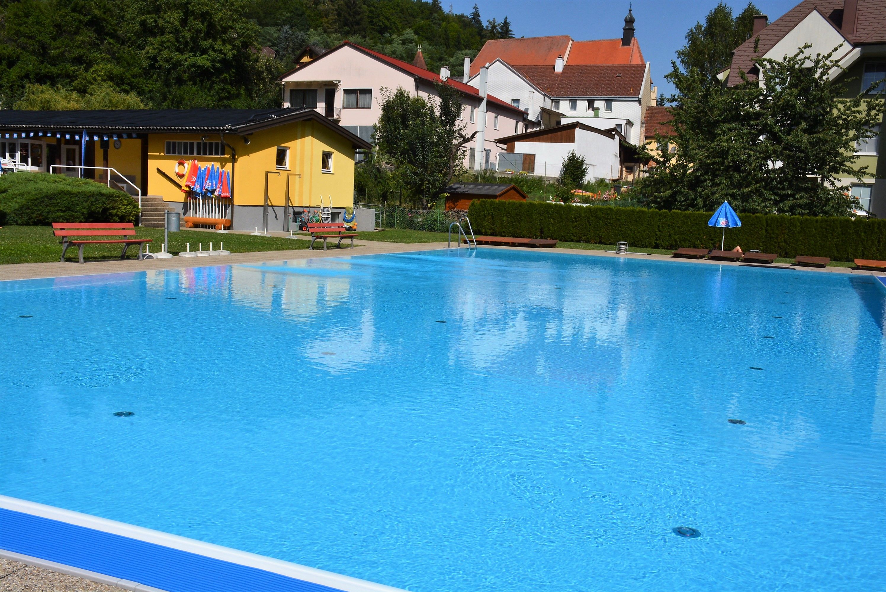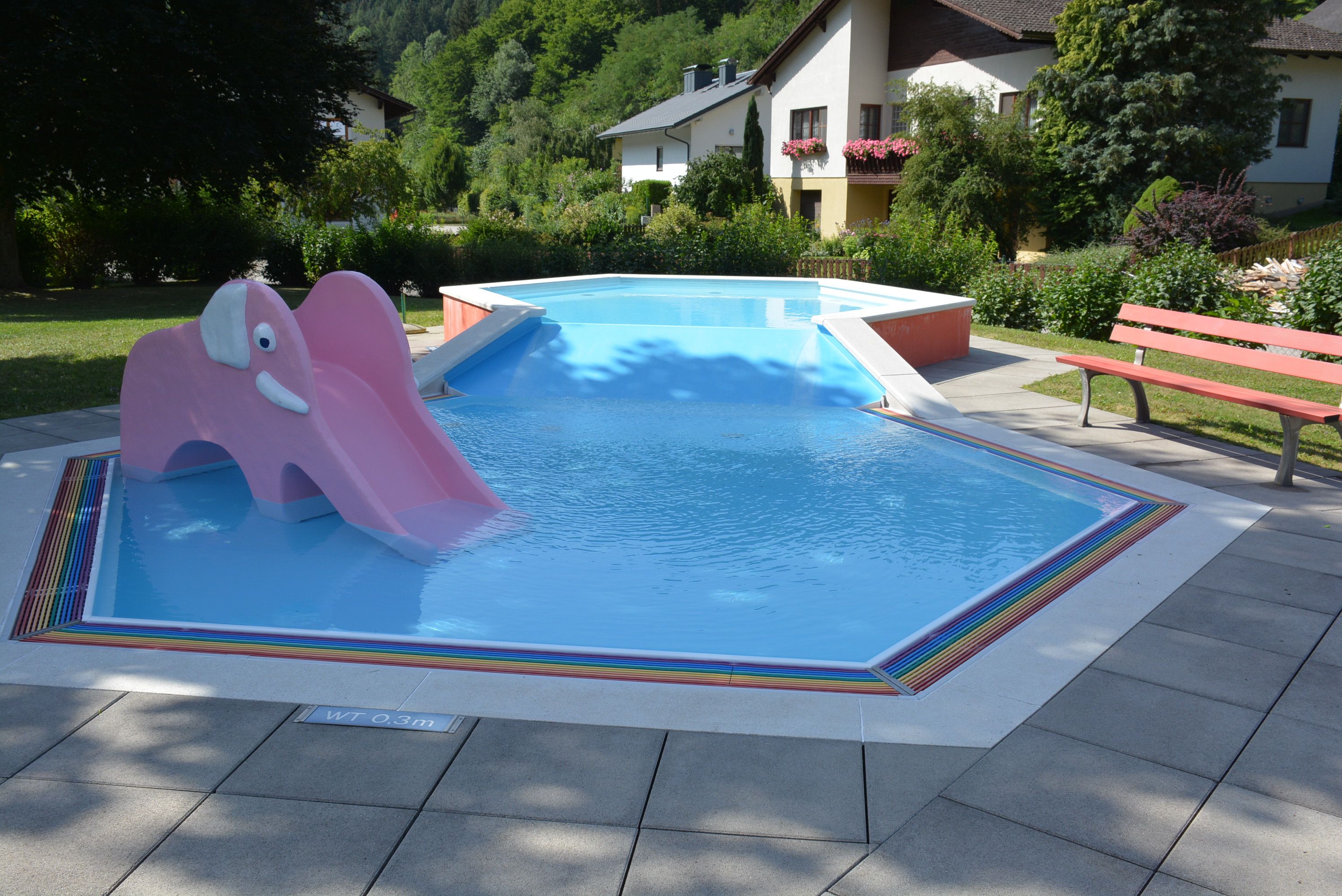 Po pěší túře se můžete vydat k solárně vyhřívanému venkovnímu bazénu s prostorným trávníkem na opalování. Tam na vás čekají masážní trysky a sprcha. Pro naše mladší hosty je k dispozici dětské brouzdaliště s navazující skluzavkou a klouzavým slonem. Gastronomie se podává v bufetu u bazénu.
