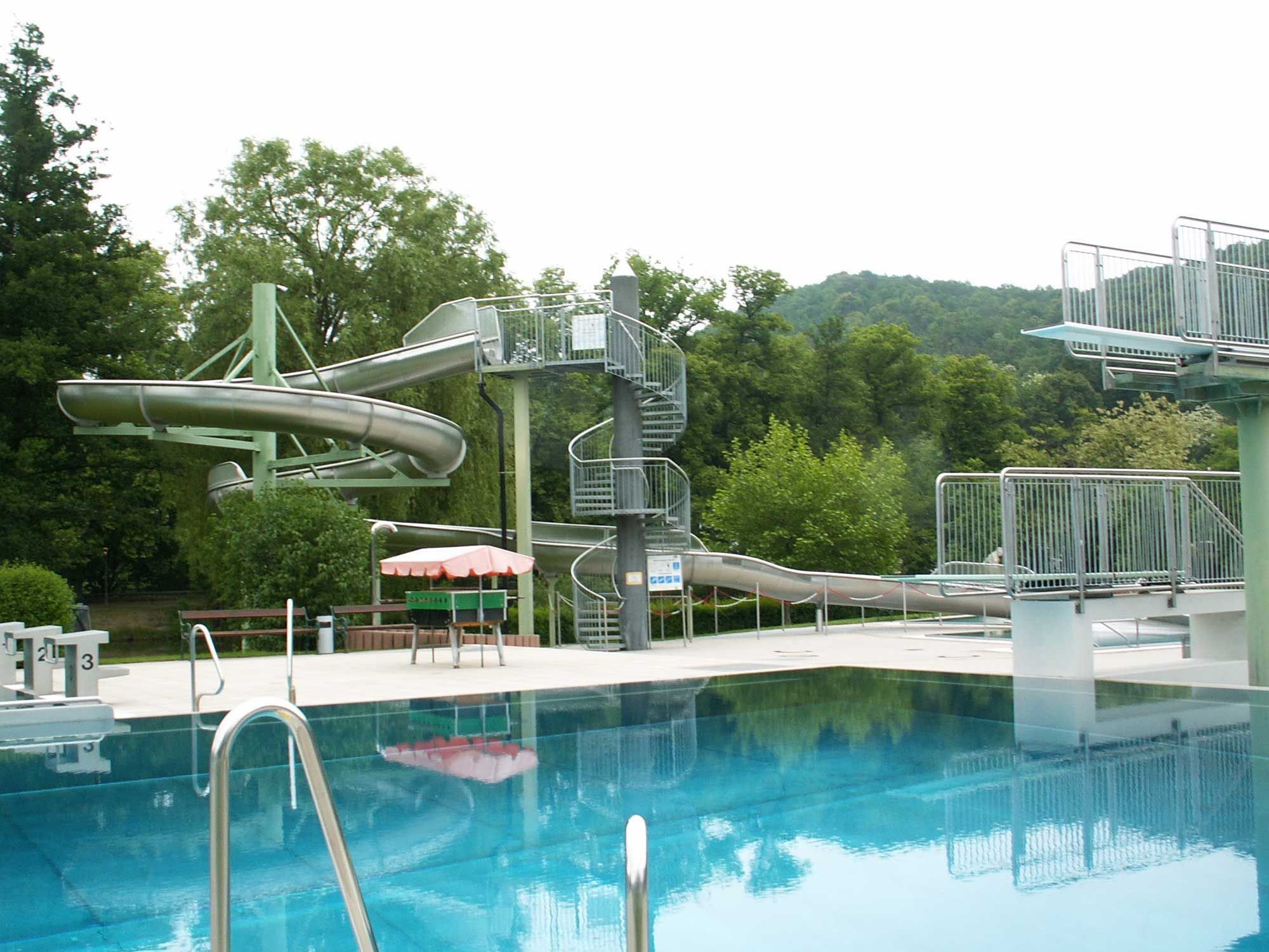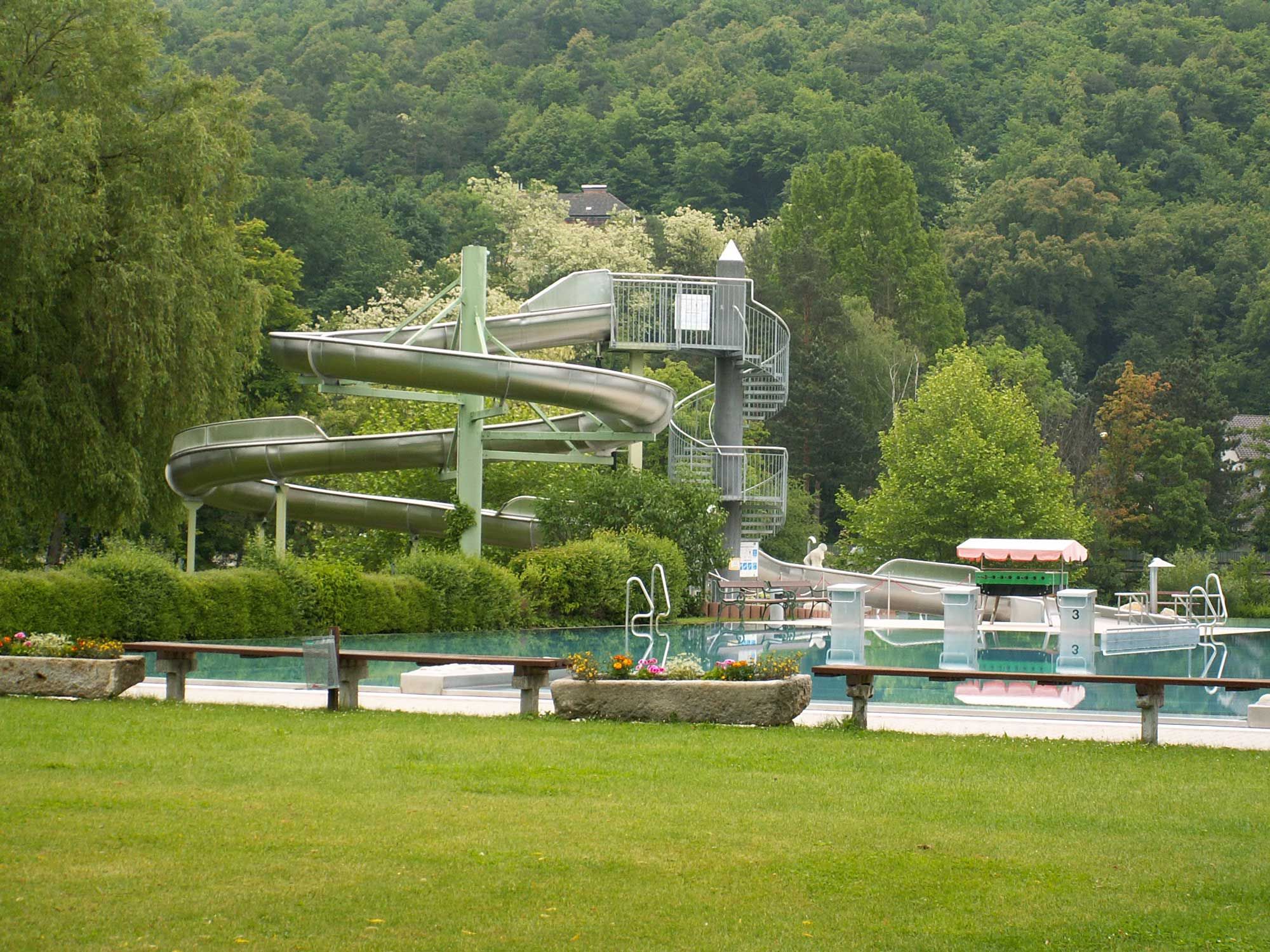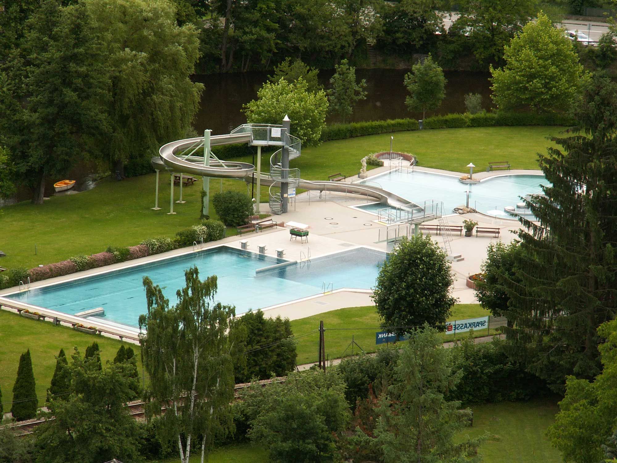 Zážitkový bazén Garser s 1 sportovním bazénem, 1 zážitkovým bazénem a 1 dětským bazénem: sportovní bazén s prostorem pro skokany, "vodní vířivé lehátko" a zážitkový bazén se vzduchovými bublinami, proudový kanál, masážní trysky, vodotrysky a 58 m dlouhá skluzavka.