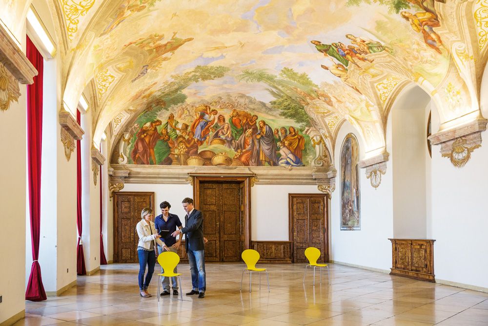 V muzeu, v části věnované císaři, mohou návštěvníci zhlédnout barokní nádheru, jako například i monumentální barokní schody s freskami na stropě Paula Trogersa z roku 1739. Patří k nejkrásnějšímu a největšímu baroknímu schodišti v Evropě. Umělecké sbírky v císařských a knížecích pokojích patří k speciální výstavě.
