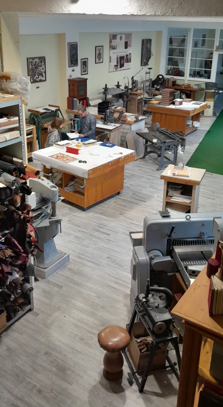 Od roku 2019 sídlí dílna v Böhlerwerku, kde se většina prací vyrábí ručně. V dílně se proto nachází jen několik strojů, z nichž některé jsou velmi staré, jiné jsou supermoderní a splňují speciální požadavky. Patří k nim kloubový lis, různé knižní lisy, ruční zlacení a pilníky, které patří mezi cenné pomocníky. Téměř denně se používají kovové a dřevěné intarzie a různé techniky ražby a lisování.