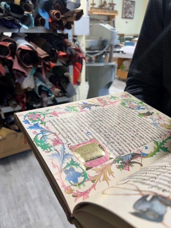 Často je povolána malá skupina specialistů na kovářství, kaligrafii, truhlářství, soustružení dřeva, řezbářství, malířství a zlatnictví, aby z knihy vytvořili nezaměnitelný unikát.