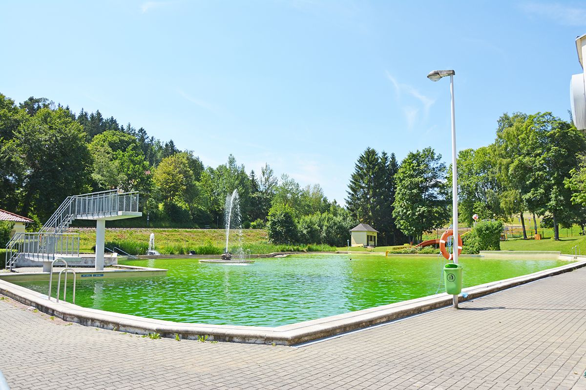 Venkovní bazén v Groß Gerungs nabízí na ploše více než 12 000 m² dostatek prostoru pro relaxaci, zábavu i sport. A to vše bez chemie (biologické čištění vody ve velkém bazénu).