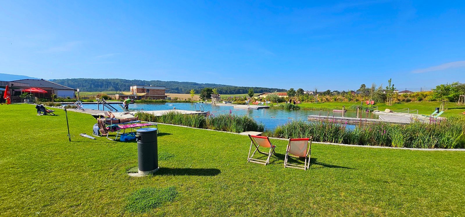 Voda v našem přírodním koupališti není dezinfikována chemickými přísadami jako ve venkovních bazénech. Naše voda o objemu 3 300 m3 cirkuluje každých 48 hodin přes 2 filtry se skleněnými kuličkami a velký štěrkový filtr bez přísad. Tím je zajištěno, že čistá voda proudí zpět do koupacího prostoru.