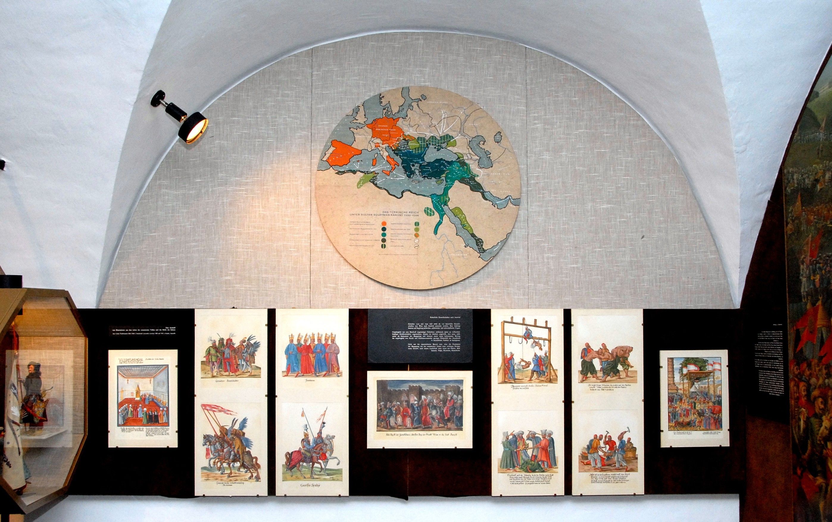 Součástí výstavy jsou početné skupiny originálů. Vedle nástěnné malby z roku 1700 například velké množství medailí ražených u příležitosti obléhání Vídně v letech 1529 a 1683. Nechybí ani kolekce kvašů vyrobených v letech 1628/29 v souvislosti s velvyslanectvím barona Hanse Ludwiga von Kuefstein. Zvláštností této výstavy jsou také modely, turecké zbraně a detailně propracované figurky rakouských a osmanských vojáků.