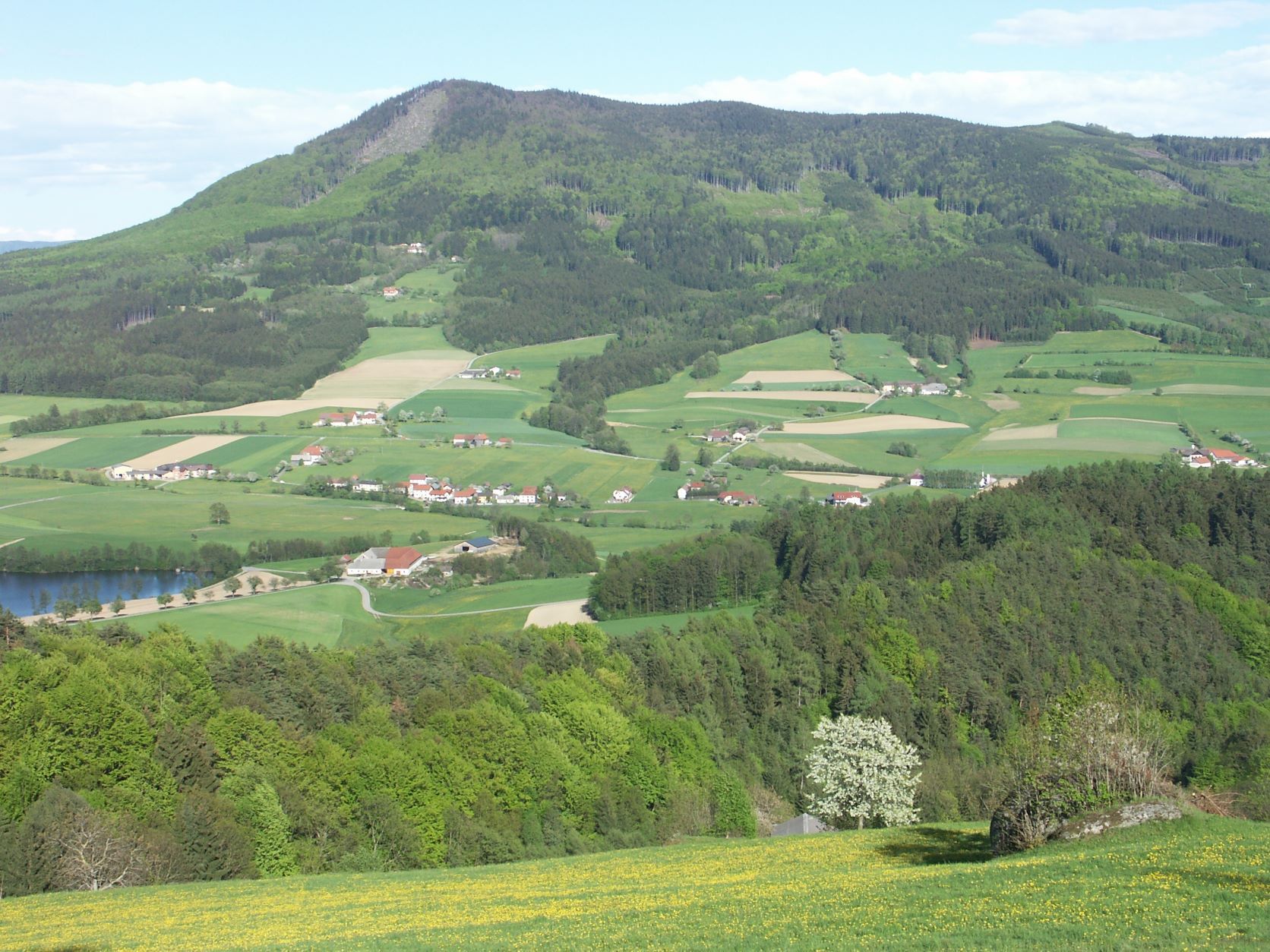 Náročná trasa Peilstein Gipfel-Erlebnis Laimbach vede k vrcholovému kříži Kleiner Peilstein.