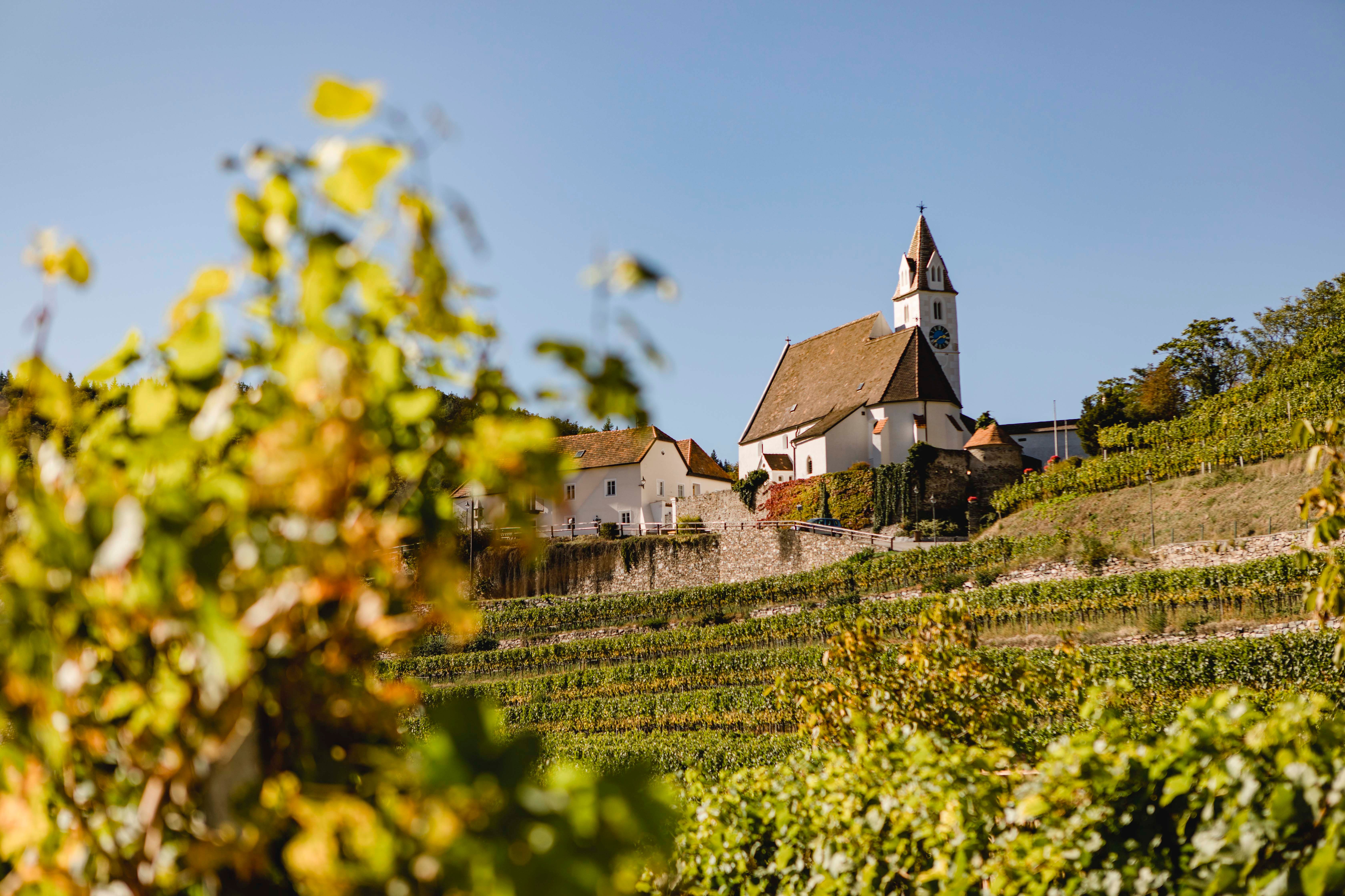 Interiér byl v 18. století z velké části barokizován. Významné části výzdoby pocházejí ze školy Kremsera Schmidta. Kostel je obklopen dobře zachovalou středověkou obrannou zdí, s krytou chodbou spojující jej s hradním kopcem.