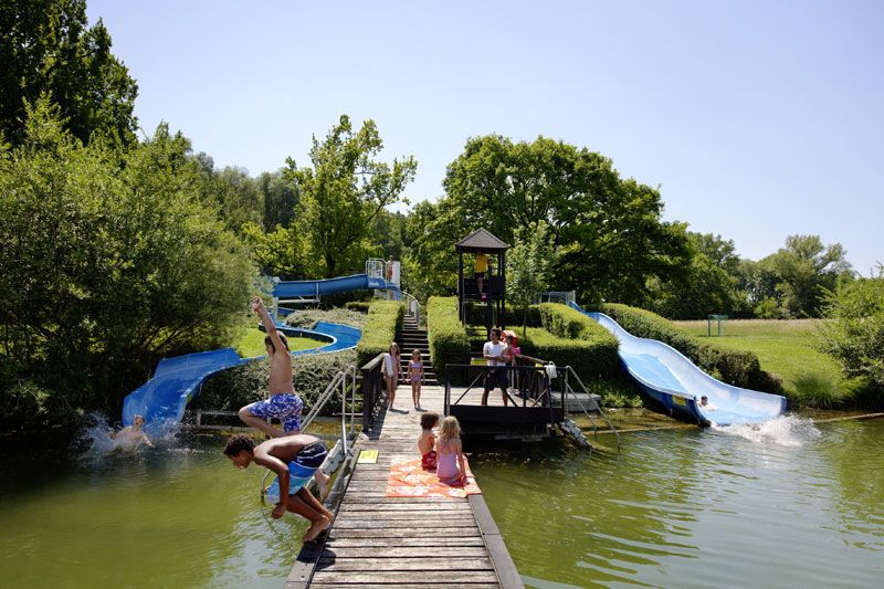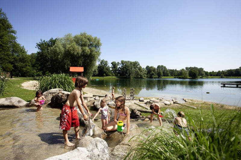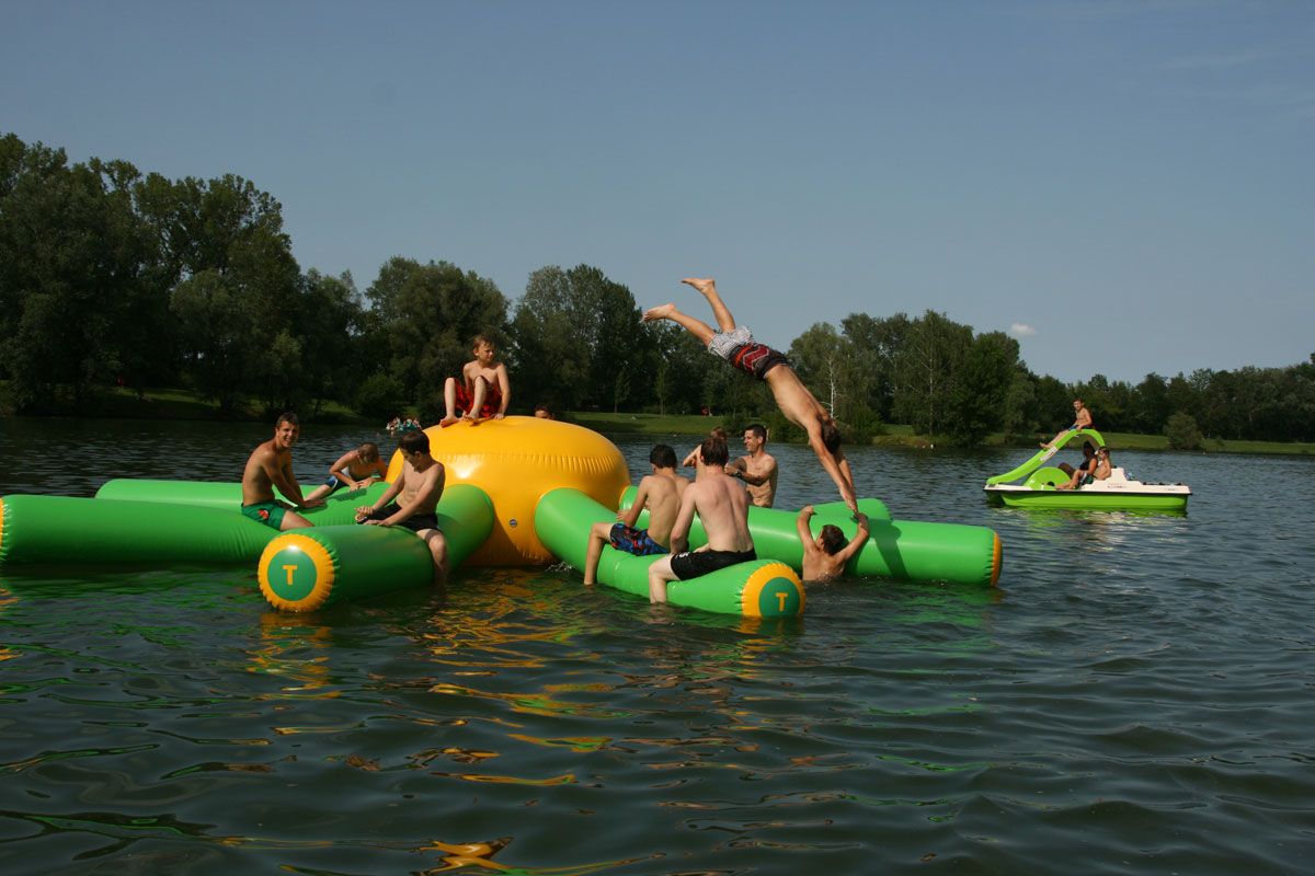 Lužní koupaliště má 50 000 m2, ostrov leží na rozsáhlém prostoru blízko dunajských luhů. Okolo jezera, které má 45 metrů dlouhou a 18 metrů širokou, vodní klouzačku, mnoho hrišť, zážitkový potok, plávající chobotnici, pískovou pláž pro děti, hriště na beach volejbal, areály míčových her, fitness parkur, prostory ke grilování (je potřeba si dopředu rezervovat) a mnoho dalšího.