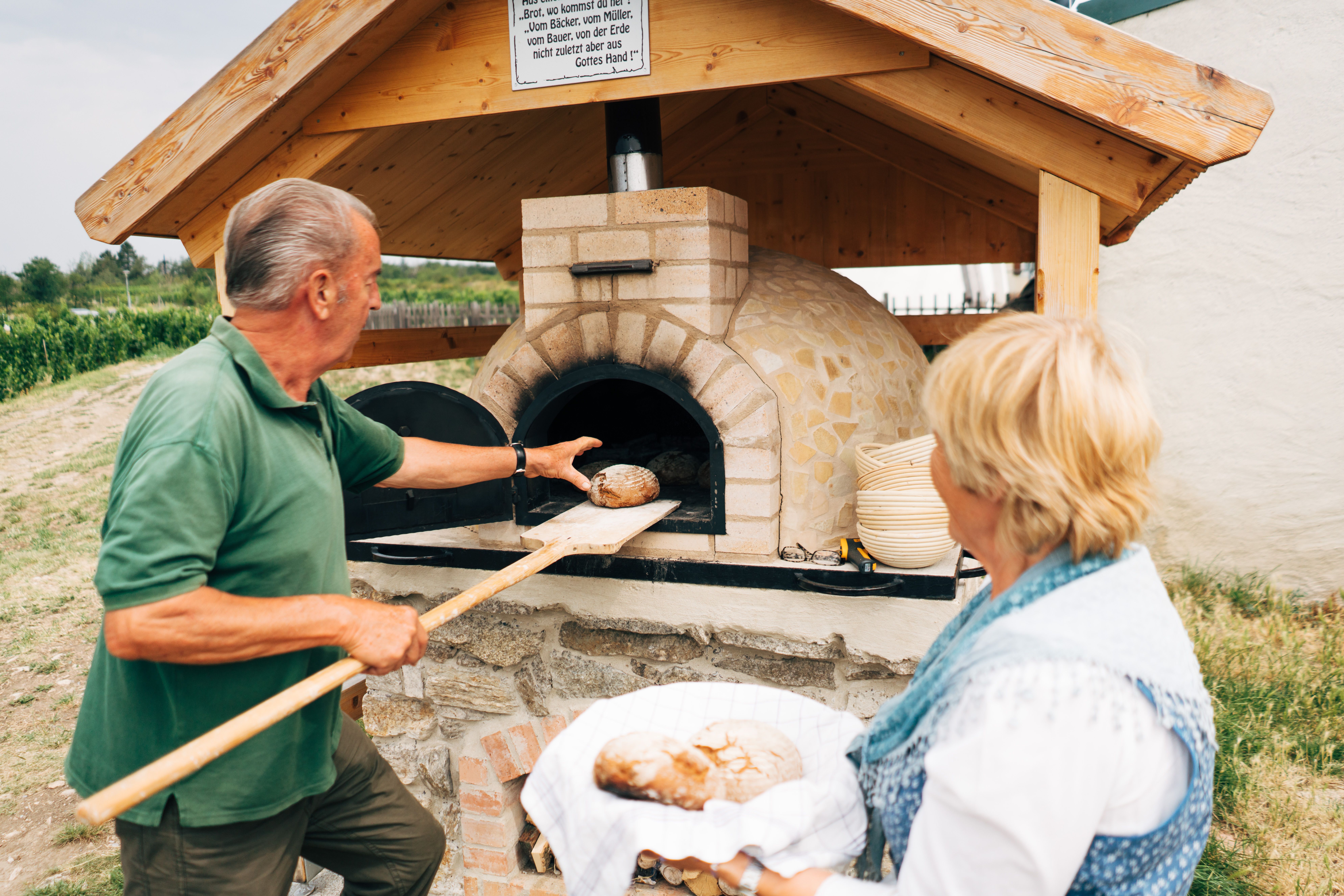 Pečení chleba v pekárně u větrného mlýna. Každý si upeče svůj vlastní chléb – těsto uhnětené vlastníma rukama se stylově vsune v „Simperl“ do kamenné pece. Pravý chléb z větrného mlýna si samozřejmě můžete vzít s sebou domů.