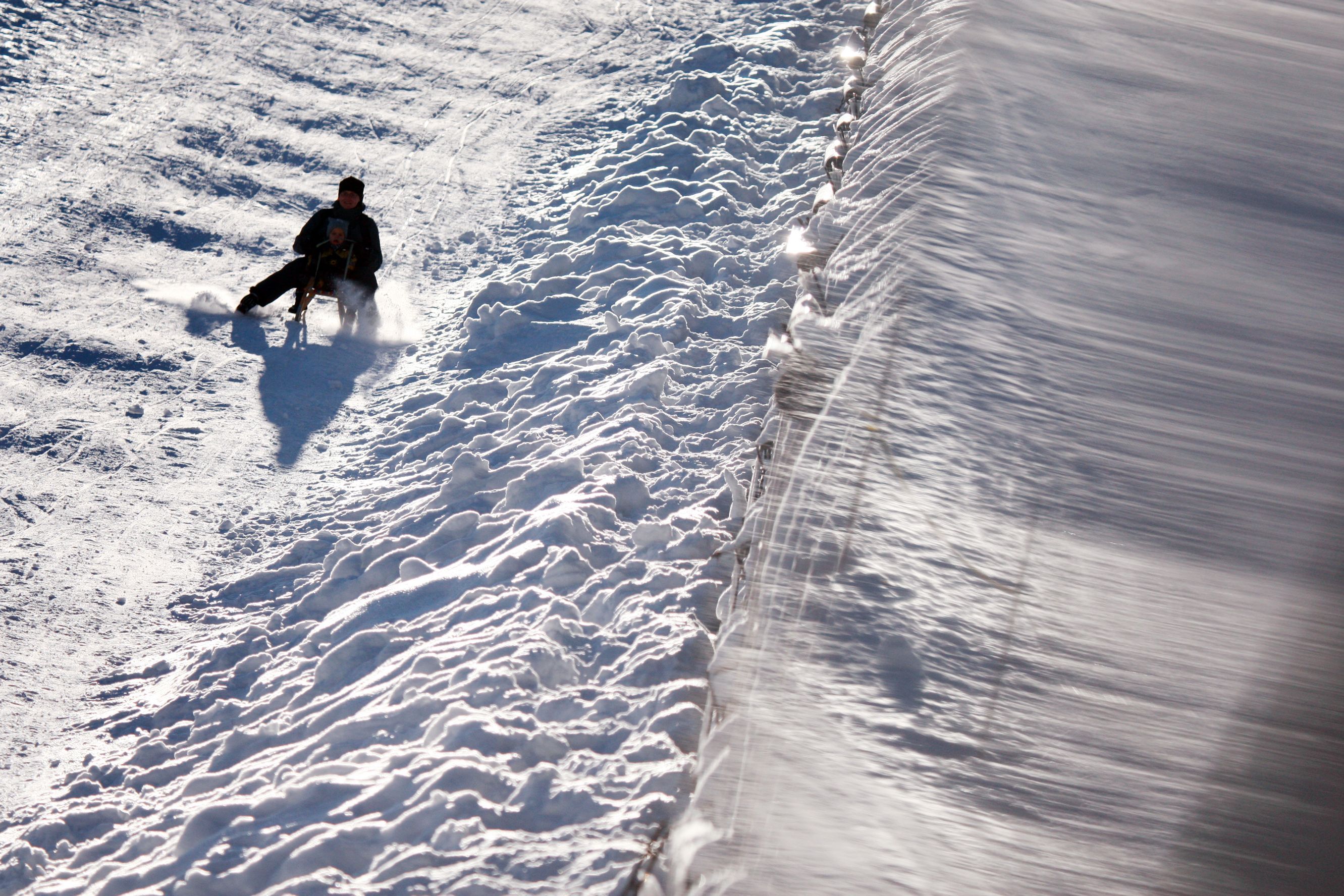 Na konci dráhy je možné sáňky sundat. Půjčovné: 5 € za sáňky (pokladna na startu).