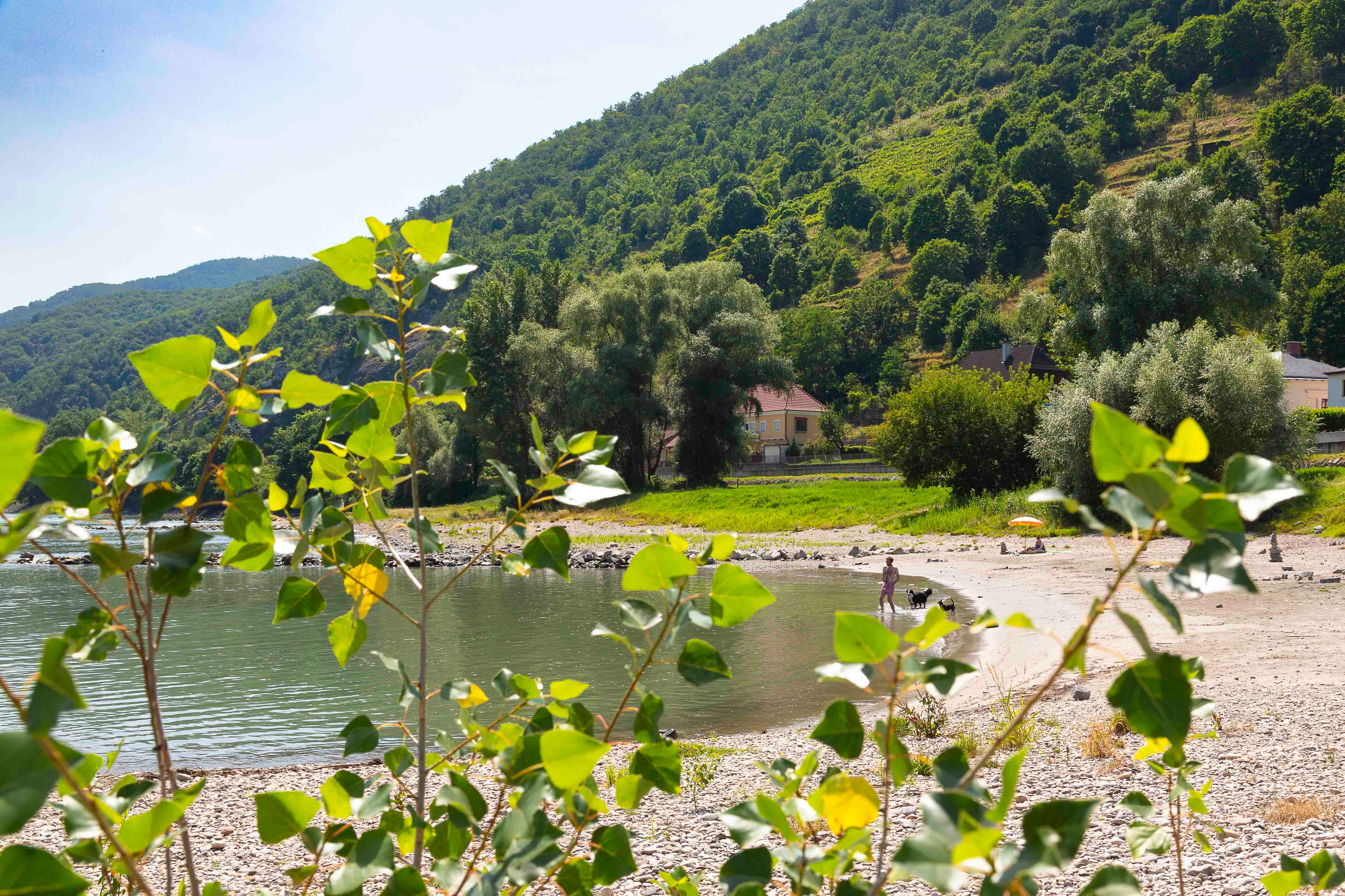 Pod zříceninou Hinterhausu v bezprostřední blízkosti spolkové silnice B3 se při odlivu otevírá krásná písčito-oblázková pláž. K tomuto úseku Dunaje vede několik schodů. Toto místo je ideální pro osvěžující koupání v dunajské vodě nebo krátkou dovolenou a je vhodné i pro psy.