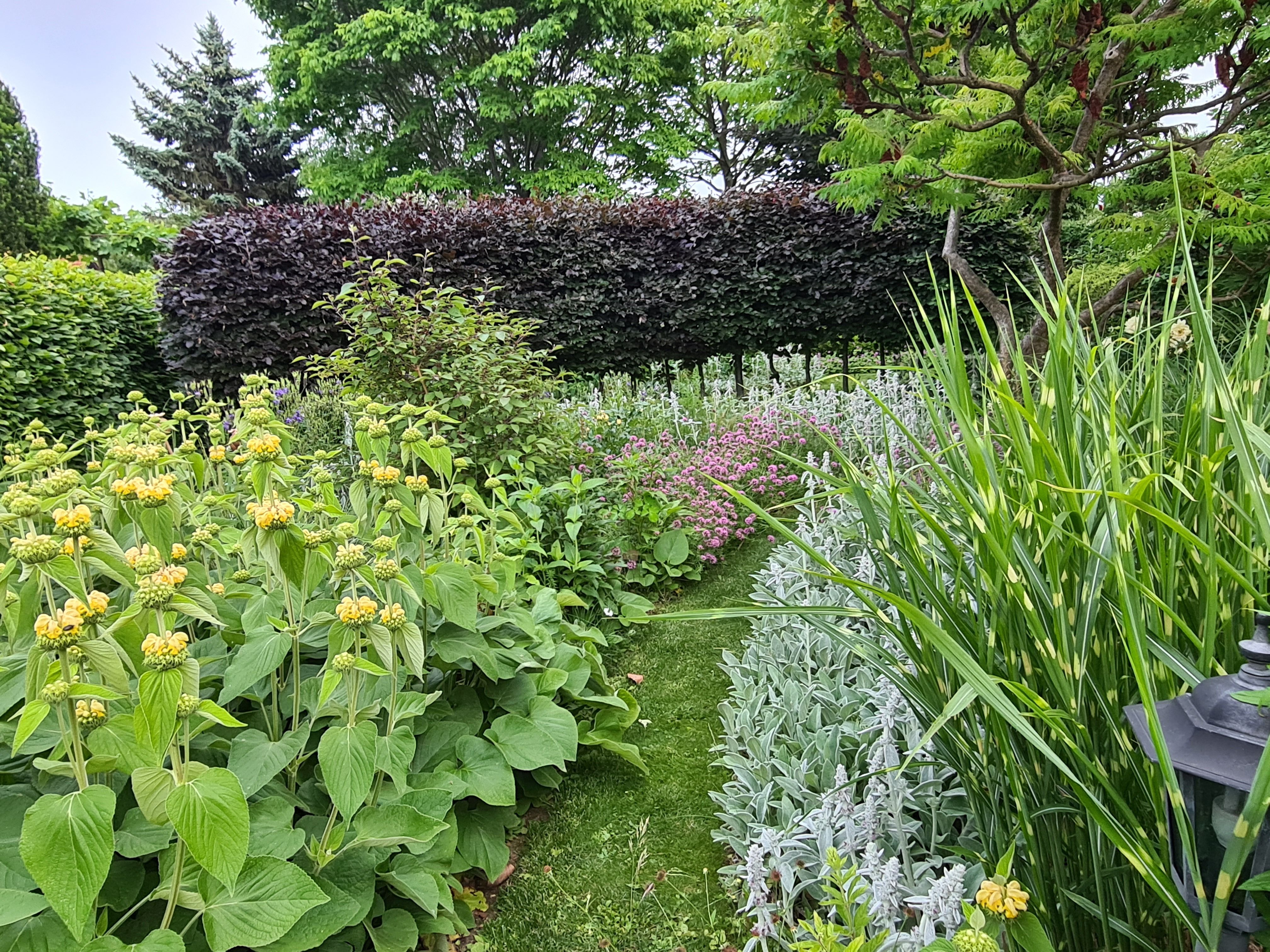 Celou plochu zpřístupňuje promyšlená síť cestiček doplněná svěžími květinovými záhony. Živé ploty rozdělují zahradu na prostory a vytvářejí vizuální osy. V posledních letech byly vytvořeny další architektonické prvky ze starých cihel, četná místa k posezení, symetrická zeleninová zahrada, růžový rondel lemovaný zimostrázem a zahrada v hloubce osázená barvami duhy. Vůdčími rostlinami jsou zimostráz, růže, lilie, funkie, jeřáb a trávy. Díky vhodnému osvětlení a použití mnoha bíle kvetoucích a stříbrolistých rostlin zahrada v noci září. Časné předzvěsti jara, bujně kvetoucí letní rostliny, zářivé podzimní barvy a bizarní zimní vzory vytvářejí neustále se měnící zahradní obrazy a činí zahradu atraktivní v každém ročním období.