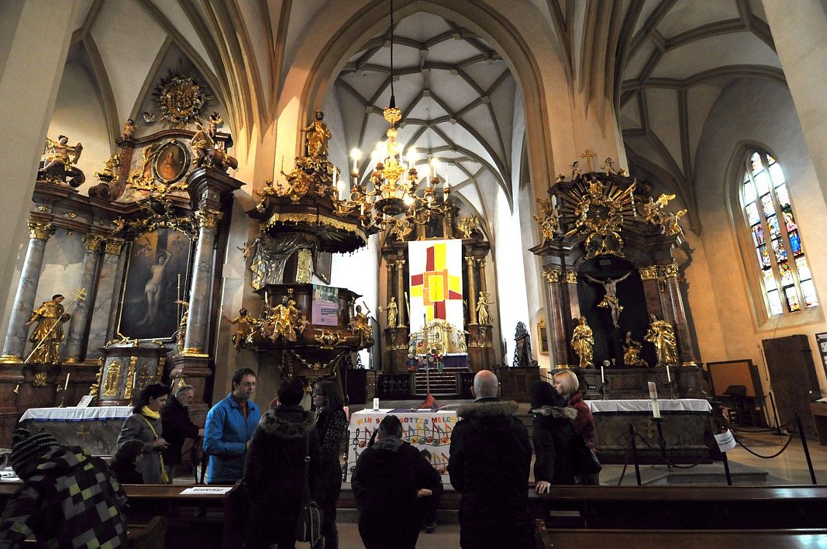 Trojlodní gotická loď byla postavena v letech 1466-85 pod vedením vídeňského stavitele Laurenze Spenninga. Kostel byl dokončen až po roce 1500, kdy byl zaklenut chór.