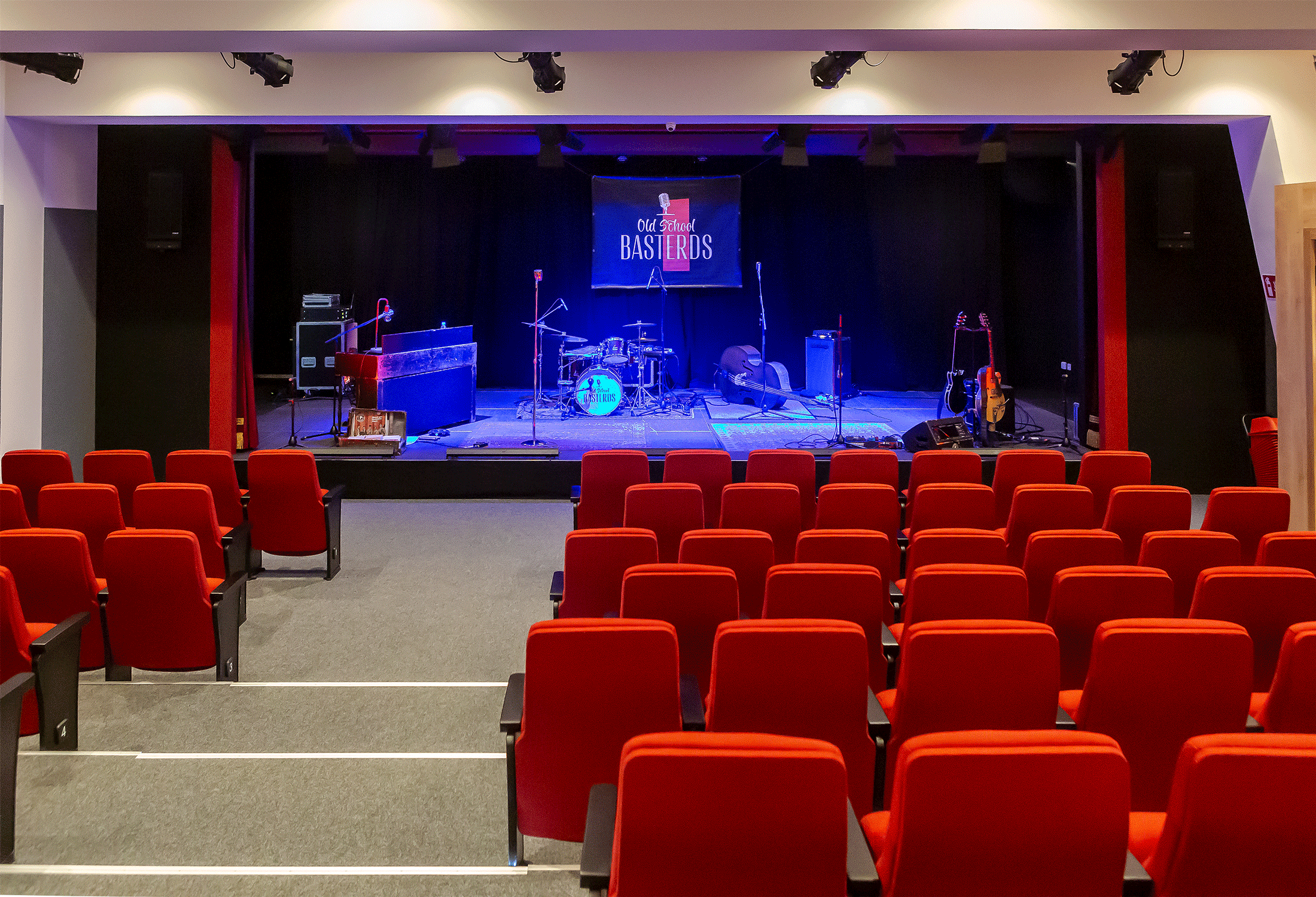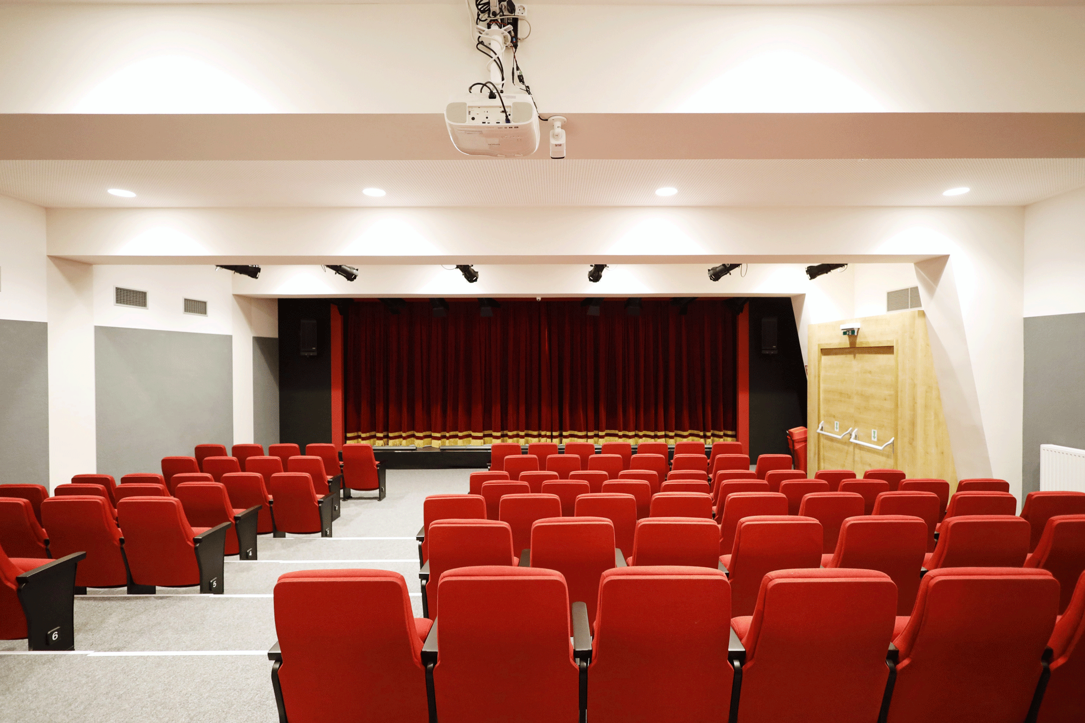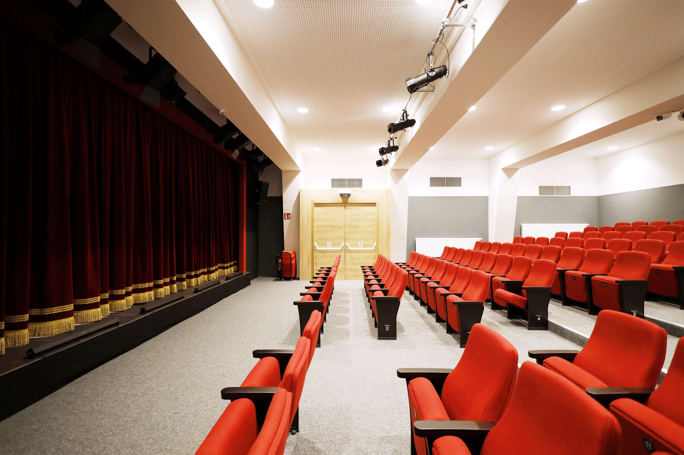 Divadelní sál pojme až 120 diváků, má bezbariérový prostor a je bezbariérový.
