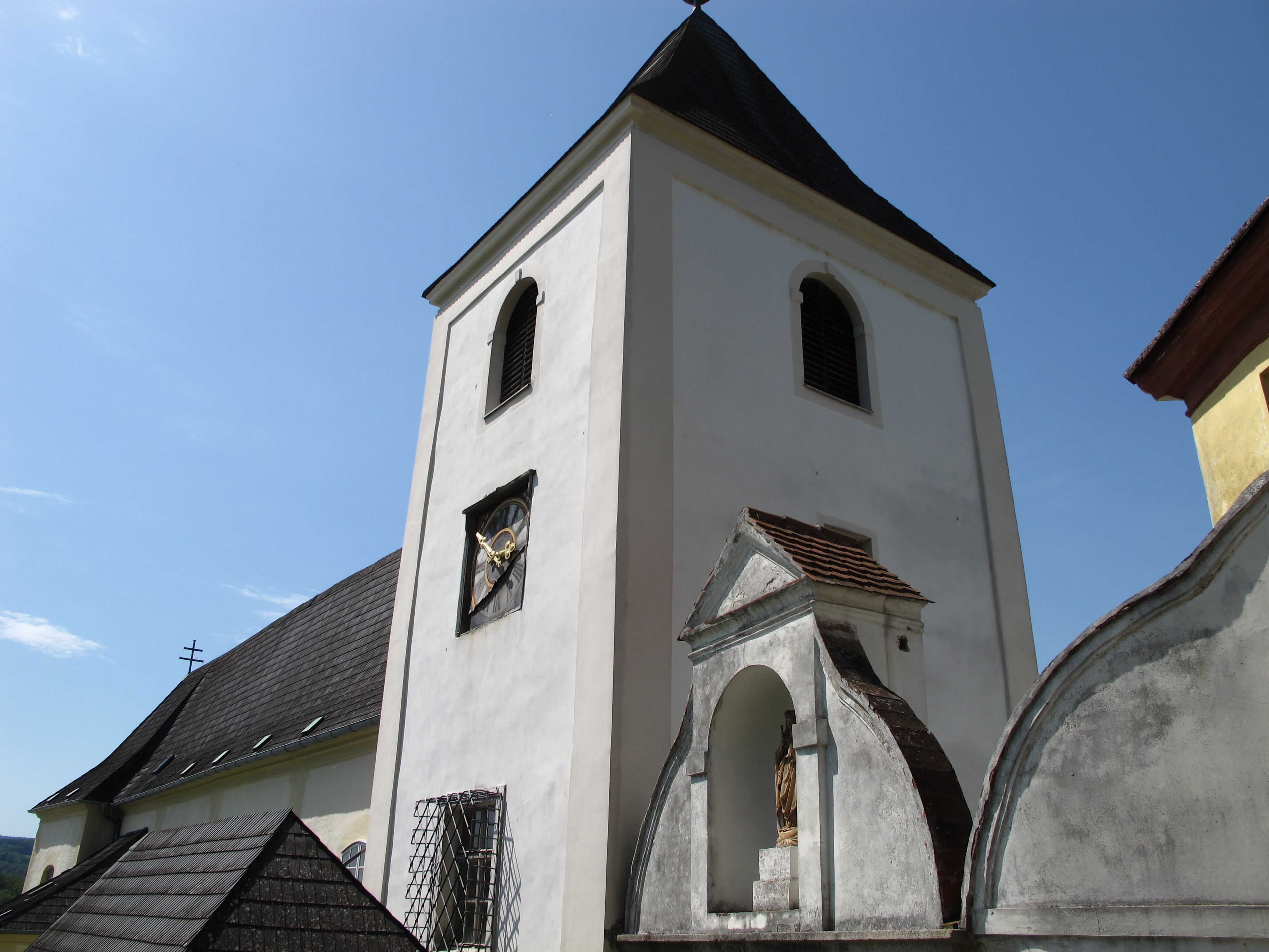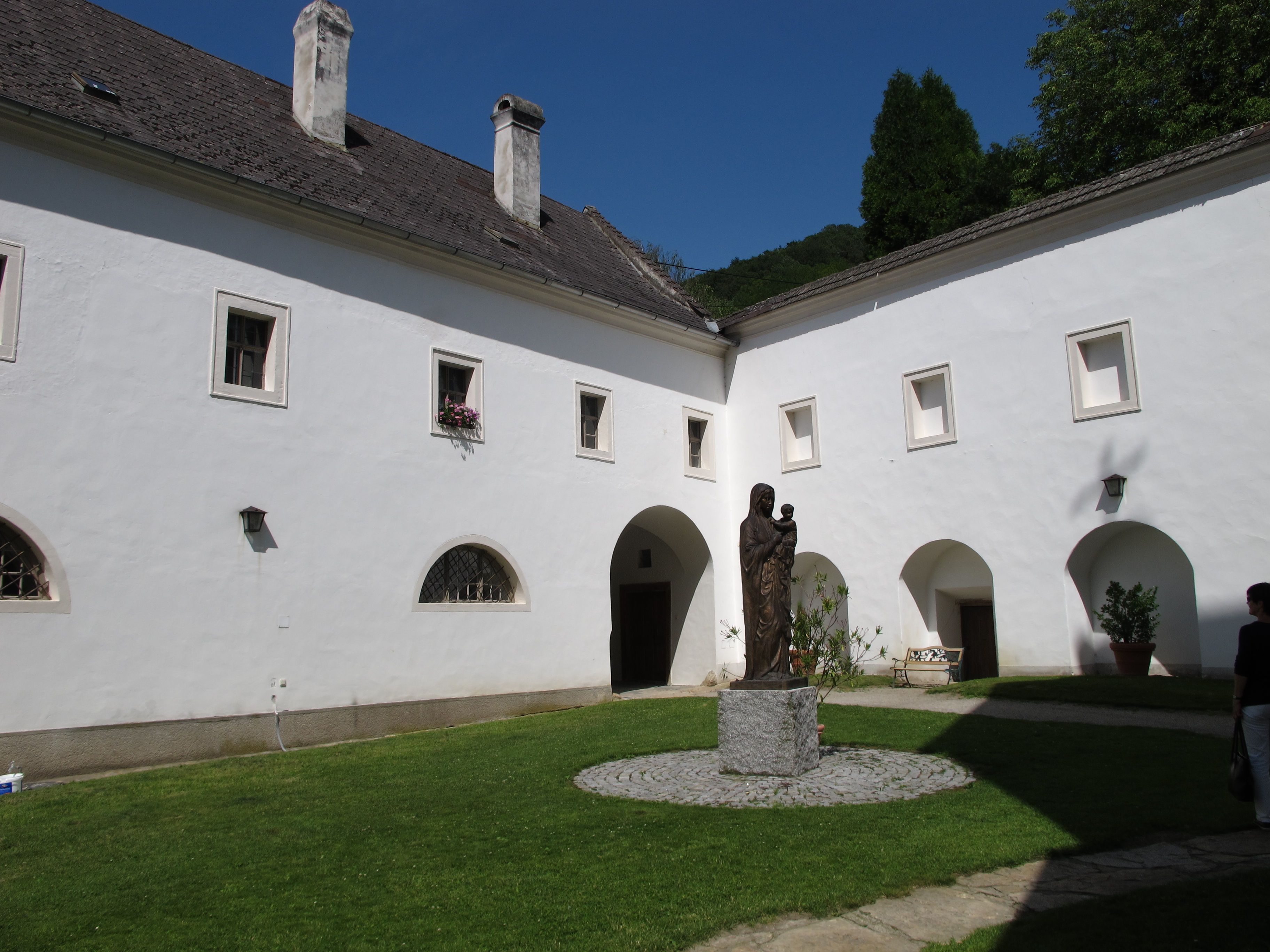 Bývalý klášter servitů Schönbühel založila v 17. století zbožná šlechtická rodina, která konvertovala ke katolicismu. Vše zde mělo napodobovat dějiny spásy v Izraeli, s Golgotou, hrobem Krista a rodištěm Ježíše v „podzemním betlému“. Věhlas získal klášterní kostel především jako poutní místo, kam se pořádaly poutě poutníků hledajících a prosících o pomoc sv. Rosálii, ochránkyni před morem. Po josefínských církevních reformách zájem o poutě ustal, a tak byl klášter i kvůli nezájmu o samotný řád v roce 1980 uzavřen.