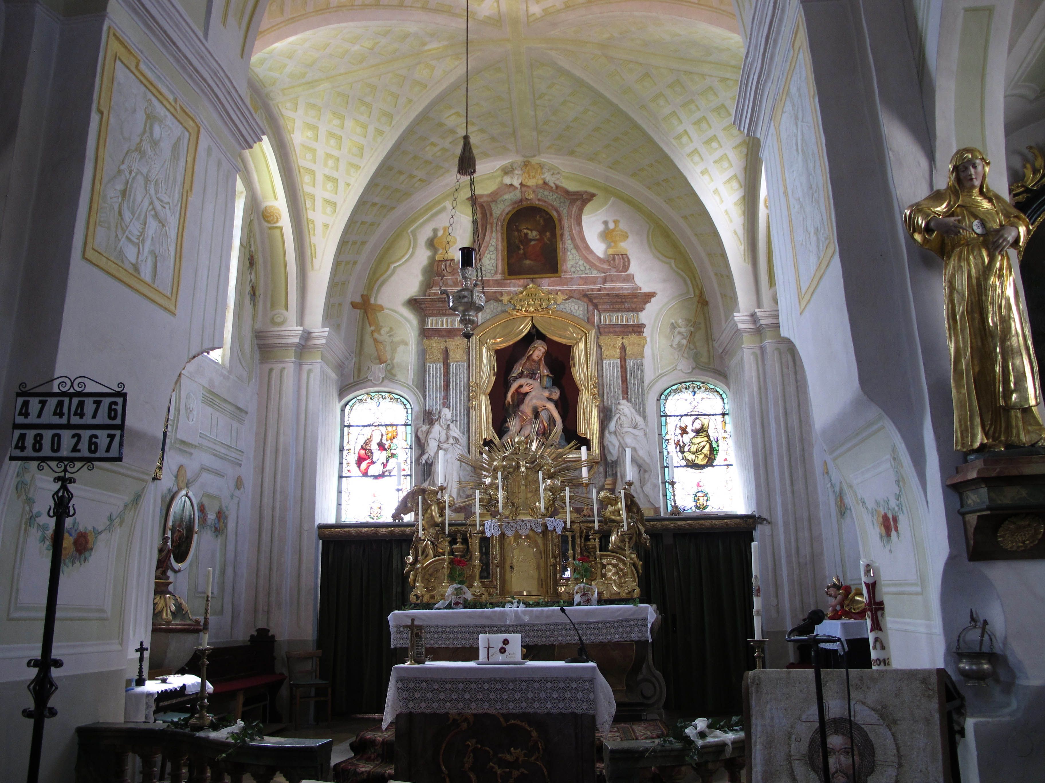 Obdivuhodné jsou tady originální vyobrazení útěku do Egypta a především kaple sv. Peregrina s freskami od známého barokního malíře Johanna Bergla. V hoře jsou vytesané schody, které vedou dolů ke grotě se zobrazením narození Krista ve městě Betlémě.