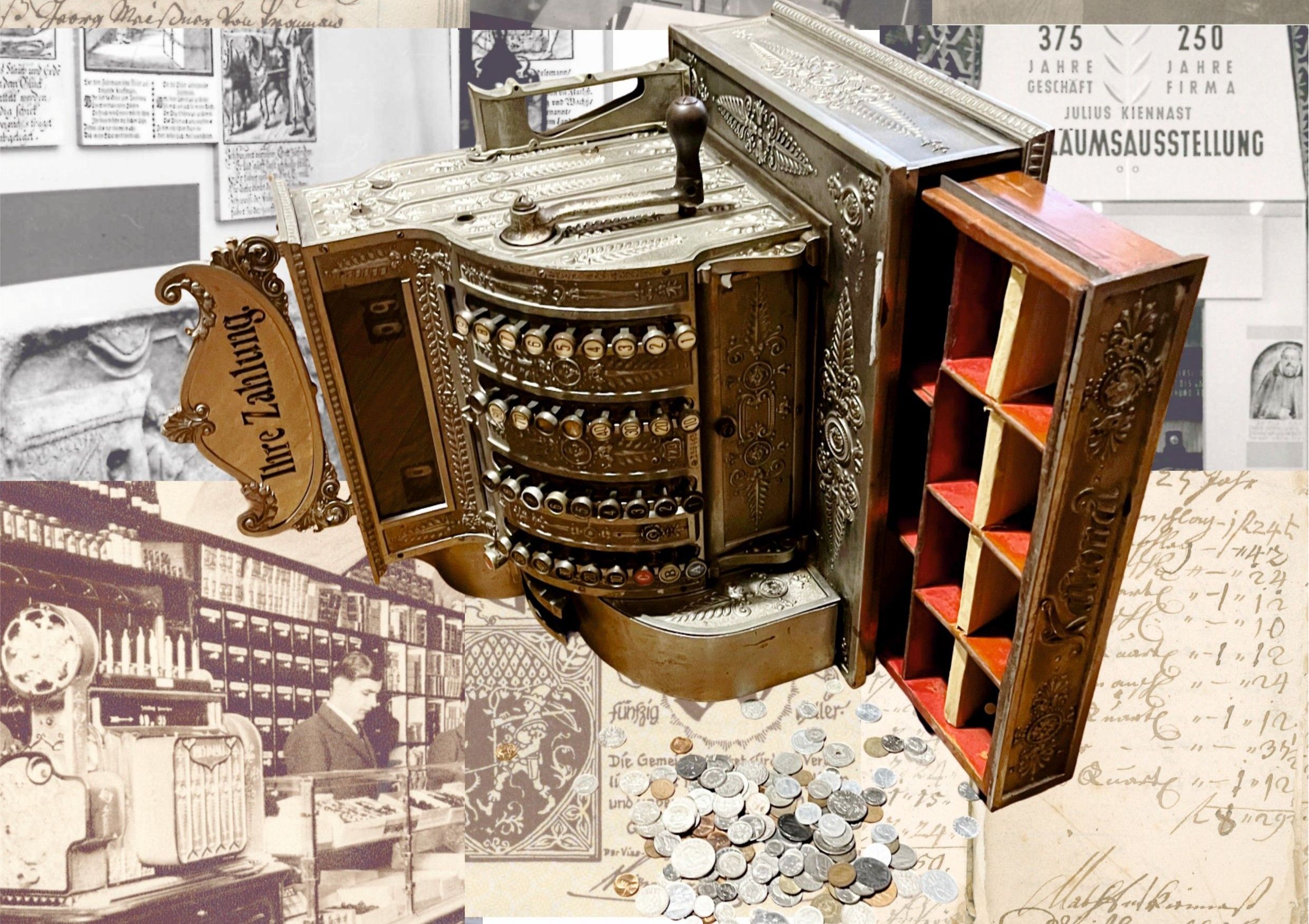 "Kassasturz" je název jubilejní výstavy v Zeitbrücke-Museum Gars, která je pořádána u příležitosti 40. výročí výstavy "Handel im Wandel". Od pátku 13. června 2024 do 26. října představí tato speciální výstava historii času od "Stazzy" (staré pokladní knihy) přes starý "Comptoir" (psací stroj) až po moderní, současné elektronické přístroje.