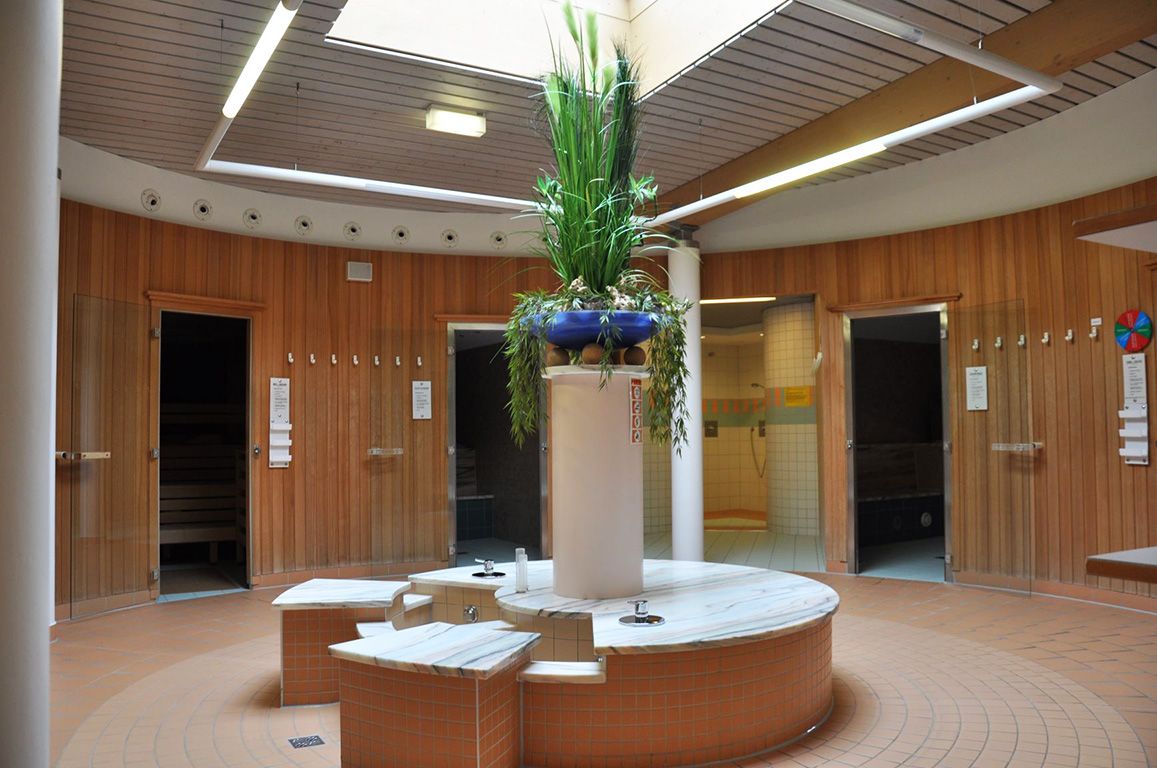 Vnitřní bazén je vybaven sportovním bazénem, dětským bazénem, zážitkovým bazénem s teplou vodou (32 °C) s perličkovou lavicí a podlahovými bublinami, voňavou kabinou a 54 metrů dlouhým velkým tobogánem. V sauně a wellness je k dispozici celá řada zařízení od finské a bio sauny až po parní lázeň, vonnou kabinu, solárium a infračervenou kabinu. Po předchozí domluvě jsou k dispozici různé masáže.